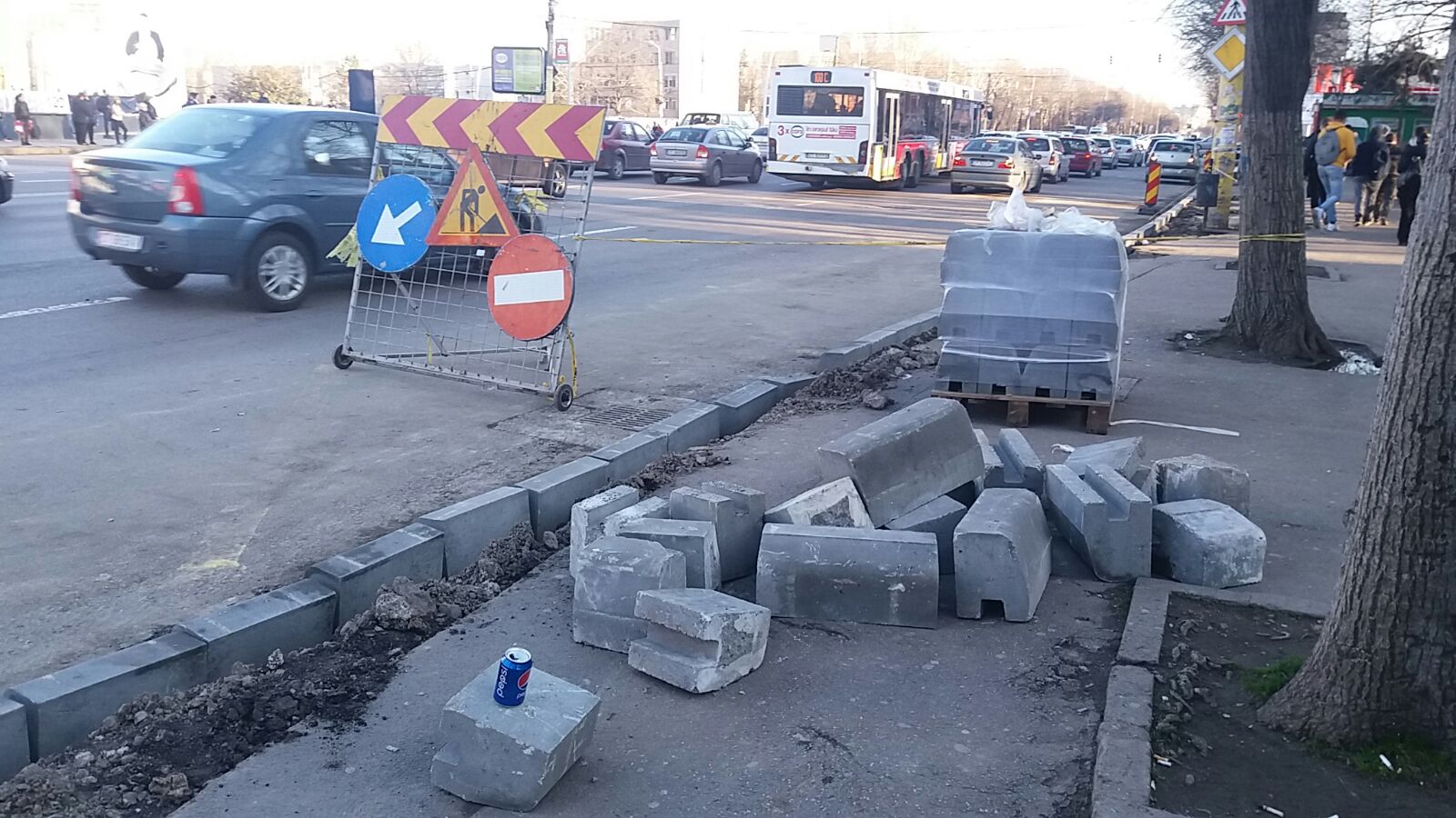 Lucrările edilitare iau avânt în Constanța. Muncitorii lucrează de zor în cartierul Tomis III, la intersecția bulevardului Alexandru Lăpușneanu cu strada Soveja.