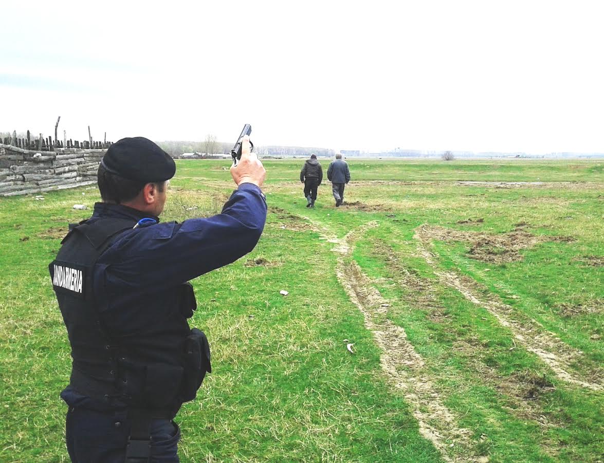 Cei doi bărbaţi au fost surprinşi de jandarmi în zona digului de protecţie de pe malul fluviului Dunărea, între localităţile I. C Brătianu şi Grindu, în timp ce transportau cu o căruţă mai mulţi saci. La vederea echipajului de jandarmi aceştia au aruncat sacii şi au încercat să fugă, fiind imobilizaţi de jandarmi cu somaţii prin foc de avertisment  cu armamentul din dotare, în condiţii legale.
