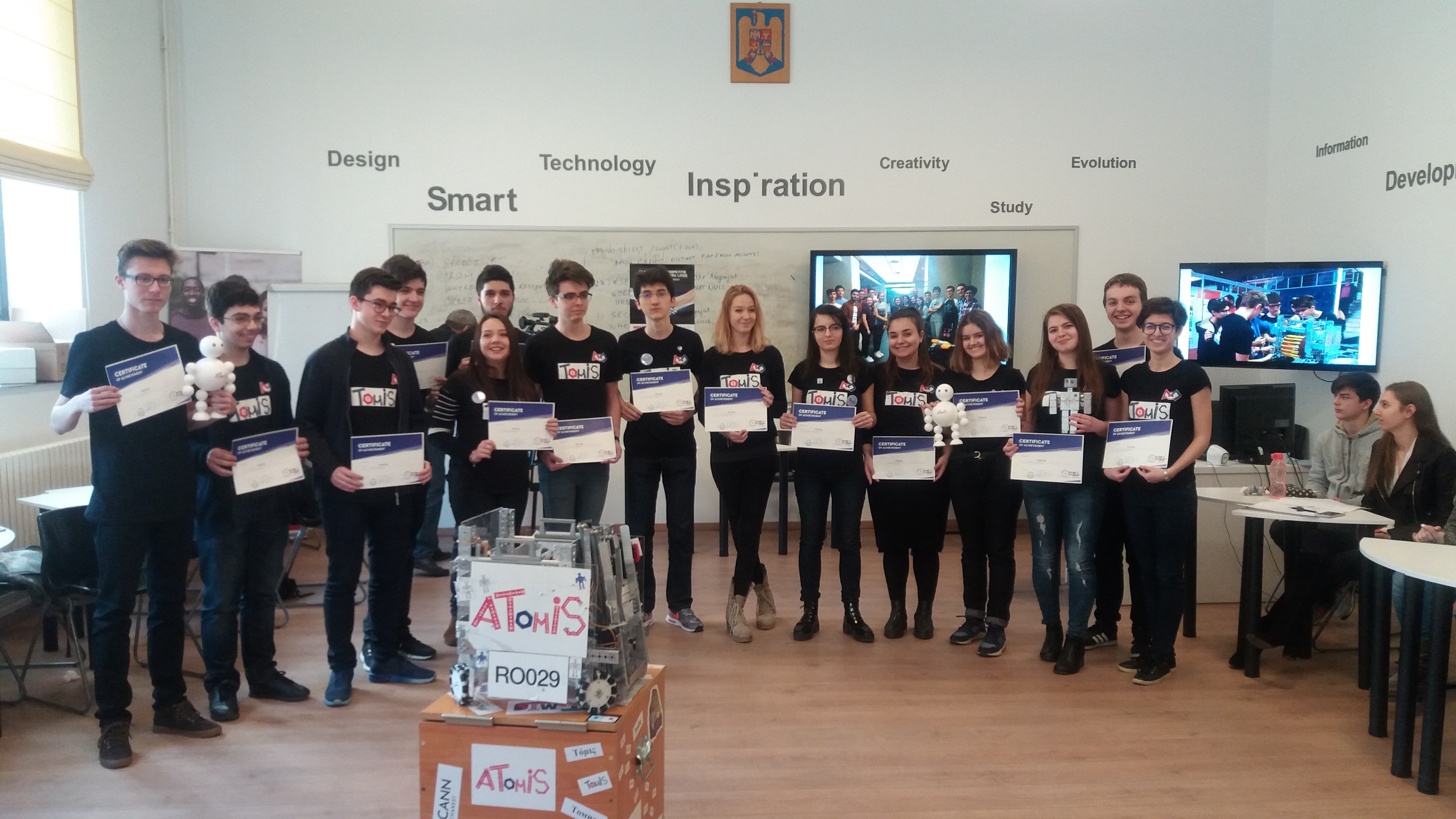 FOTO/Liceenii de la Colegiul MIRCEA CEL BĂTRÂN s-au întors victorioși de la competiția națională de robotică First Tech Challenge