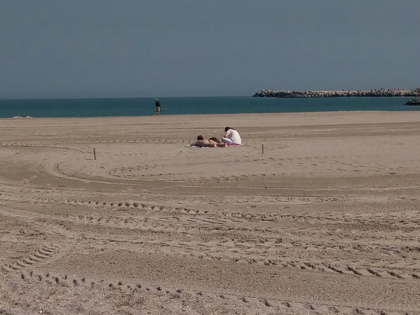 Soarele generos, cele 17 grade Celsius înregistrate oficial în Mamaia (la soare temperatura sare de 20 de grade) și lipsa vântului au scos temerarii iubitori de raze solare direct pe plajă!