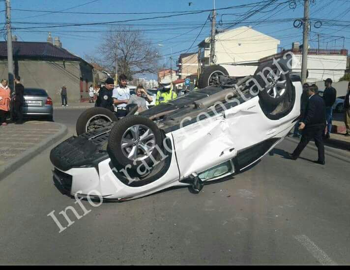 Foto/ACCIDENT: Mașină cu roțile în sus în Piața CHILIEI