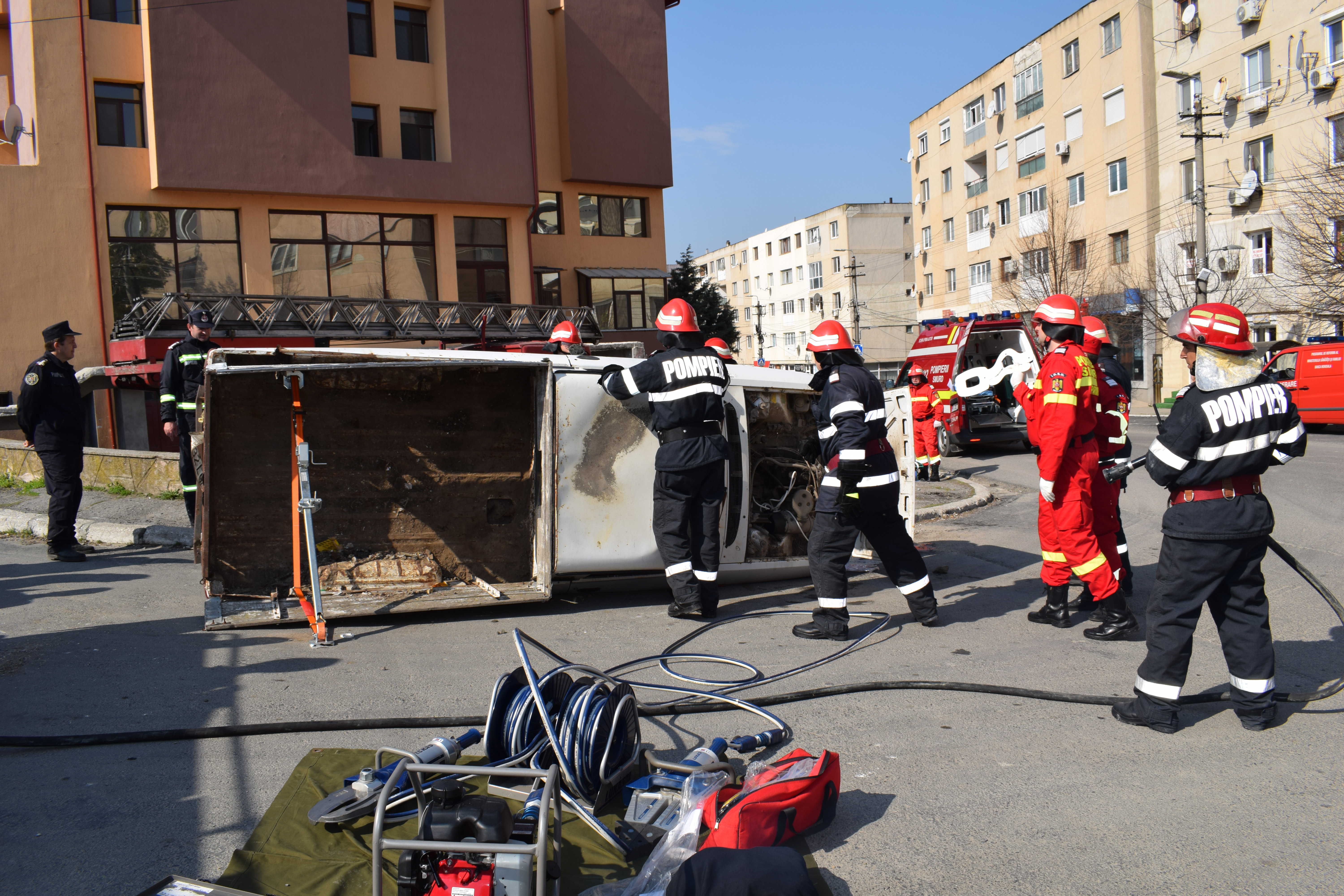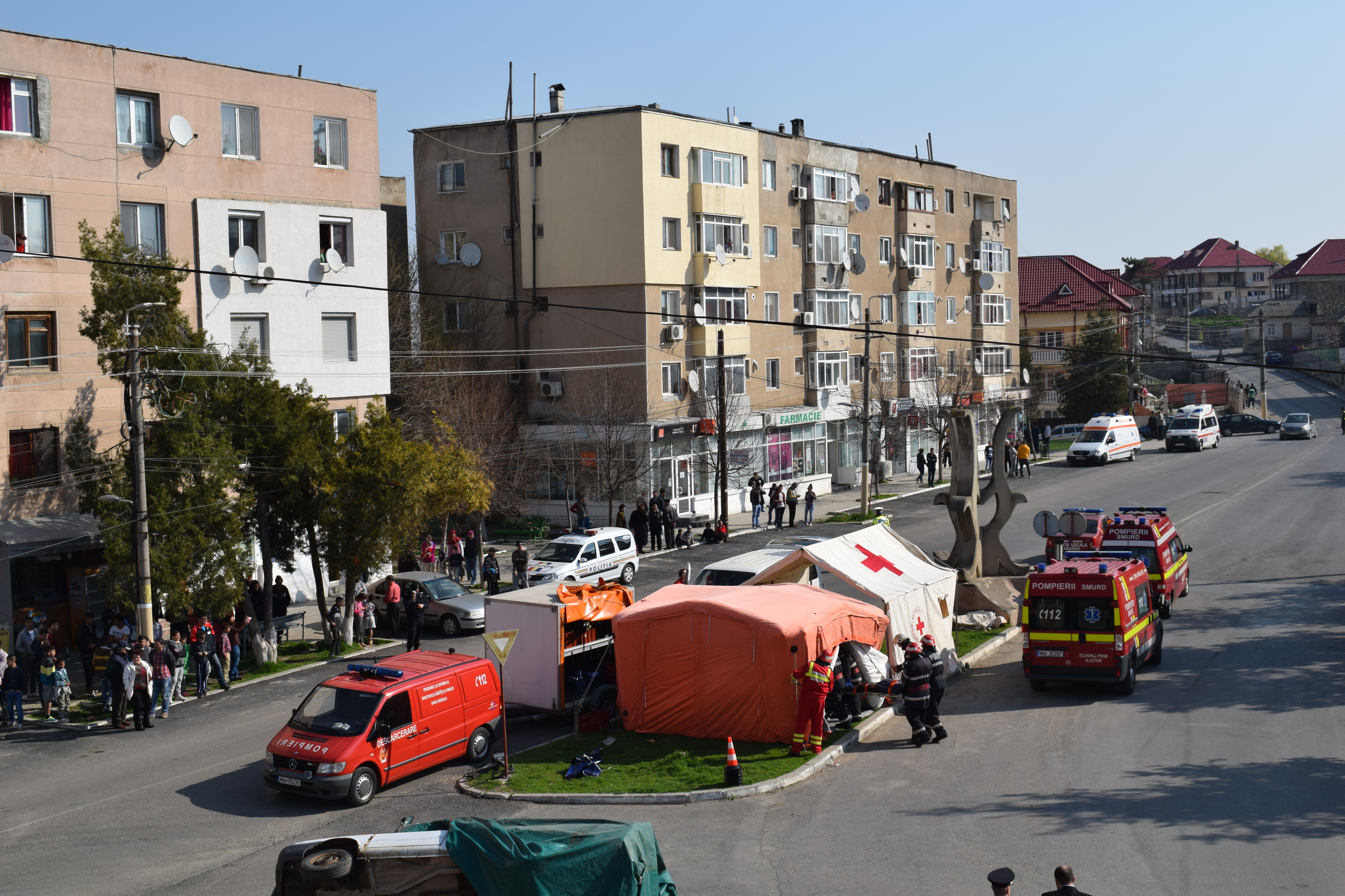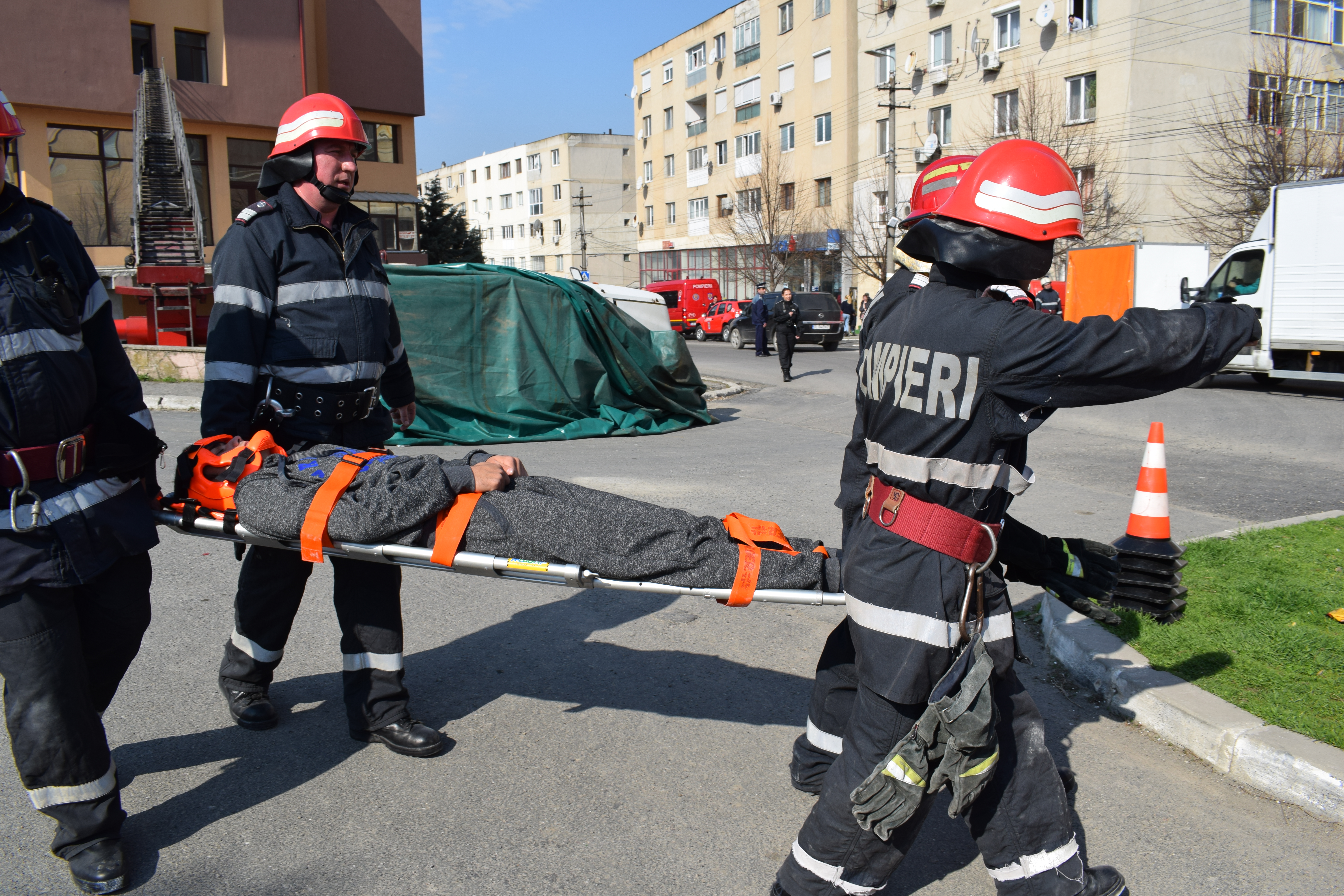 Pompierii ISU Delta Tulcea au organizat, joi, în oraşul Babadag, un exerciţiu tactic pentru limitarea şi înlăturarea unor situaţii de urgenţă generate de un cutremur.