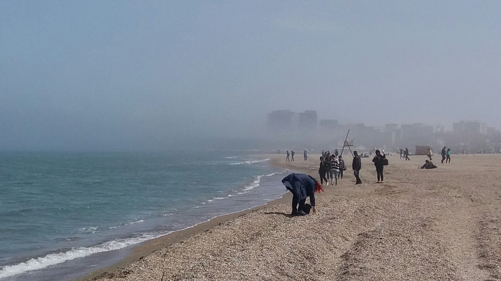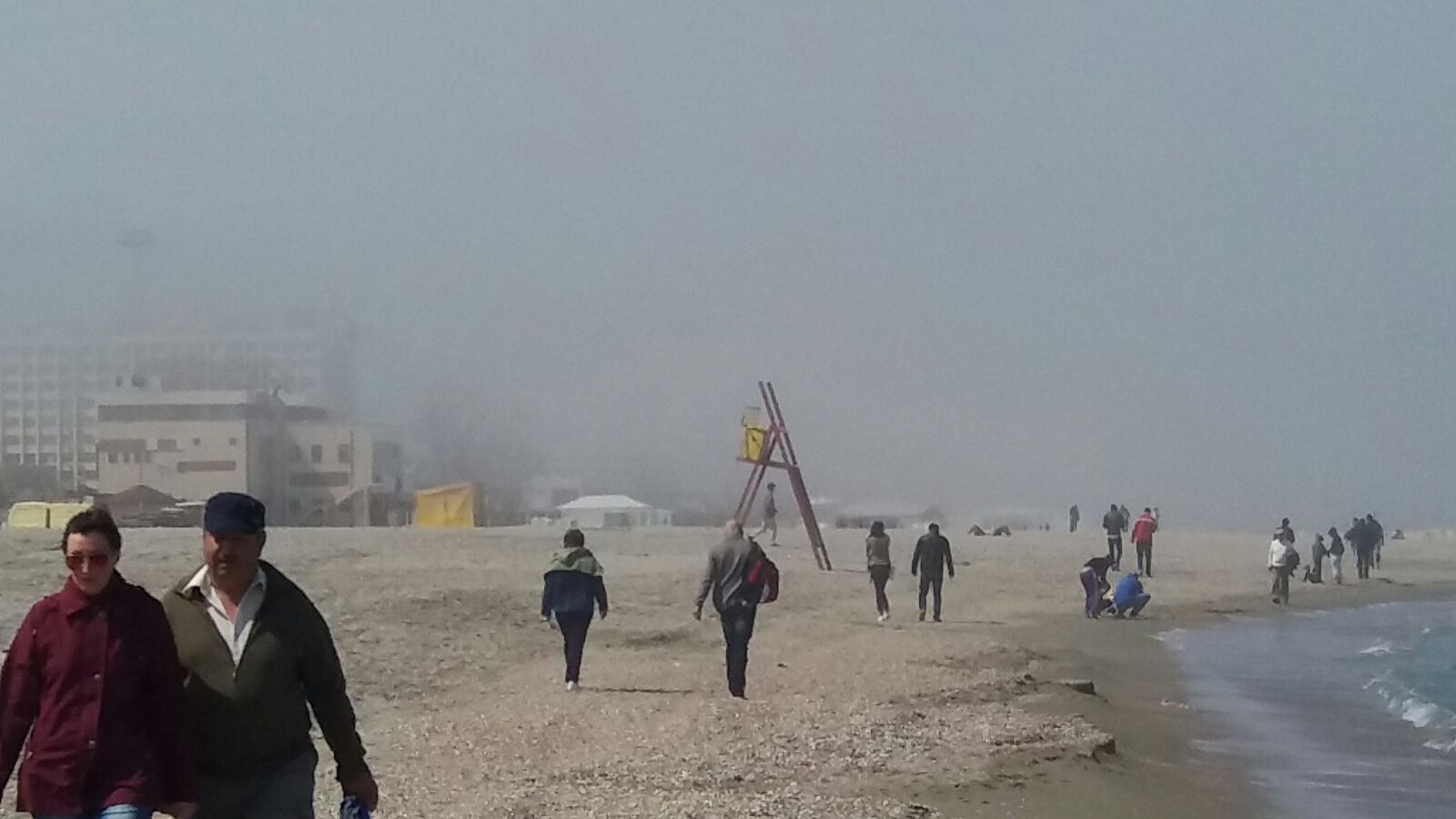 Minivacanța de 1 Mai a început, însă ceața câștigă teren în fața soarelui. Astfel, sâmbătă după-amiaza norii de ceață s-au răspândit repede de pe mare pe plajă.