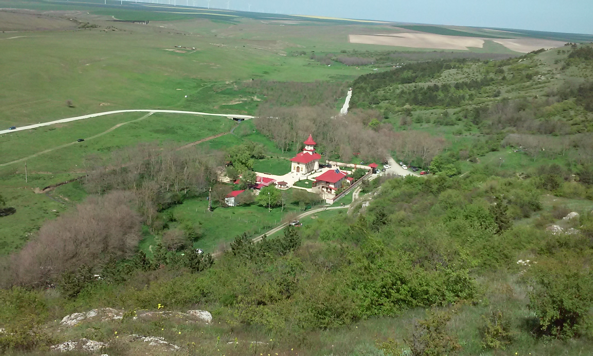 Mânăstirea este înconjurată de o pădure de salcâmi care acum au înfrunzit. Pe deal bujorii , stânjeneii și alte flori de primăvară încântă privirea celor ce se încumetă să urce până la peșterile Liliecilor și La Adam și chiar mai sus pentru a privi spre „pădurea de eoliene”sau spre lăcașul de cult înconjurat de pârăul Visterna ce izvorâște din satul Mireasa. Acoperișul portocaliu al mânăstirii e ca o floare între varietatea de verde din jur.