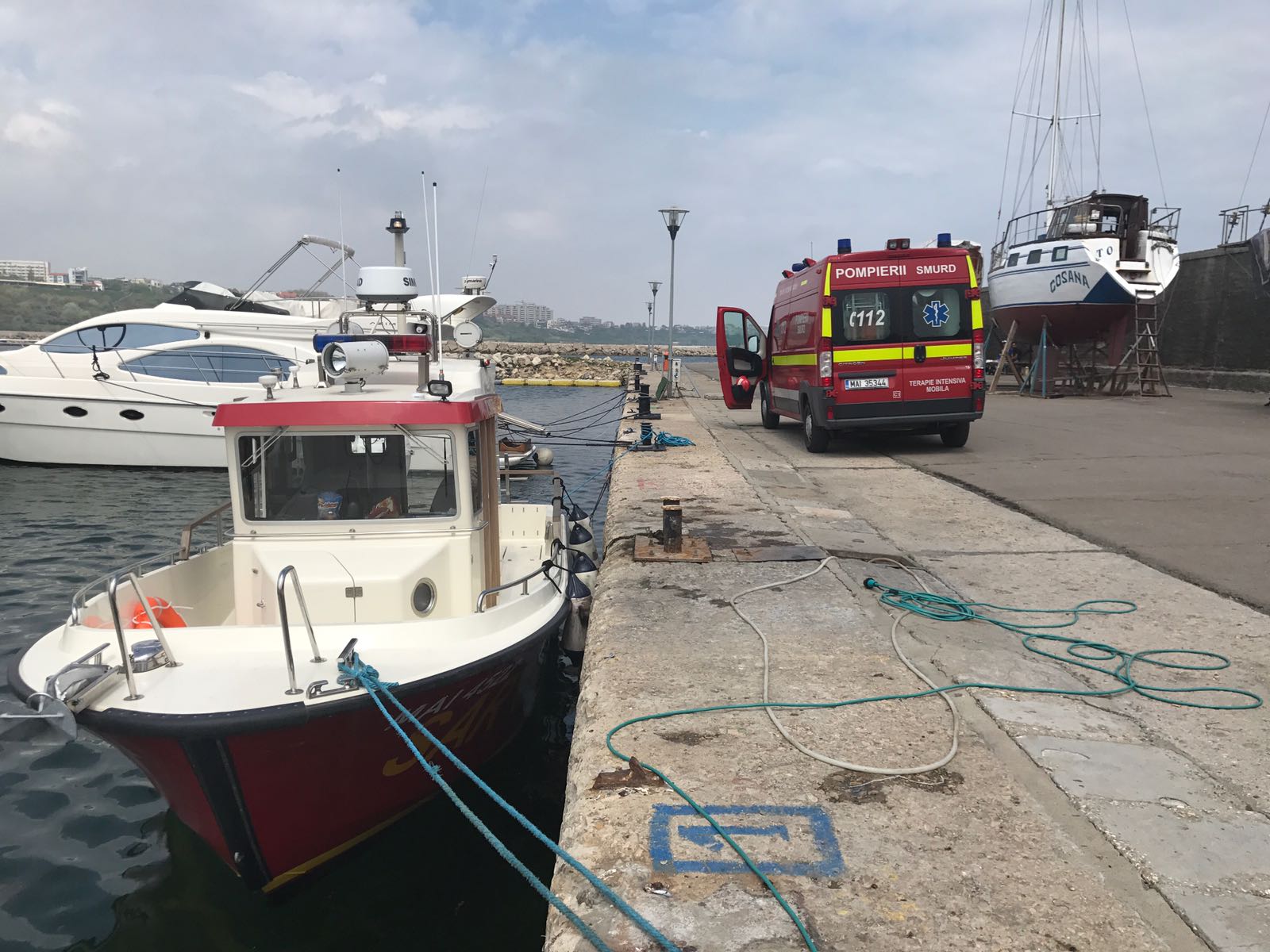 Femeia a fost scoasă din apă de pompieri și transportată cu o pilotină în Portul Tomis. Aici va fi predată unui echipaj al Ambulanței, care o va transporta la urgențe. Femeia este în stare de hipotermie. Victima a stat în apă aproximativ o oră.