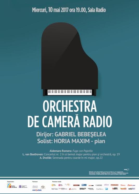 Pianistul Horia Maxim, considerat unul dintre pianiştii de referinţă ai generaţiei sale, va concerta la Sala Radio miercuri, 10 mai, ora 19:00, alături de Orchestra de Cameră Radio, la pupitrul căreia se va afla dirijorul Gabriel Bebeşelea. Programul serii va debuta pe ritmuri de muzică latino-americană, cu piesa Fuga con Pajarillo, semnată de compozitorul venezuelean Aldemaro Romero. Vor urma Concertul nr. 2 în si bemol major pentru pian şi orchestră, op. 19 de L. van Beethoven şi Serenada pentru coarde în mi major, op. 22, de A. Dvořák.