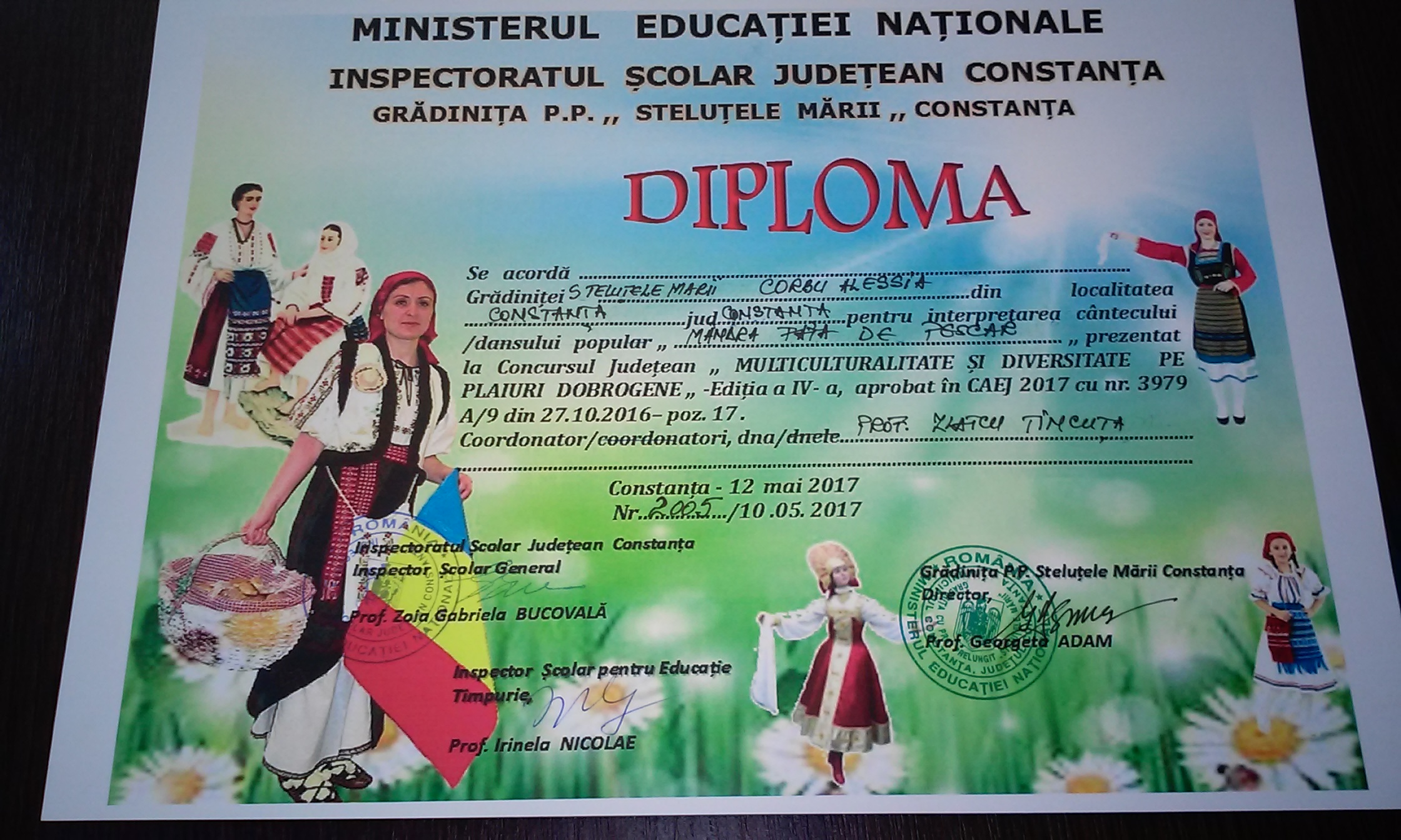 Trofeul a ajuns la „Micii căluşari” de la Grădinița nr.33 din Constanţa pentru „Căluşul”, pregătiţi de prof. Adriana Mereuţă şi Niculina Ciubotăraşu.