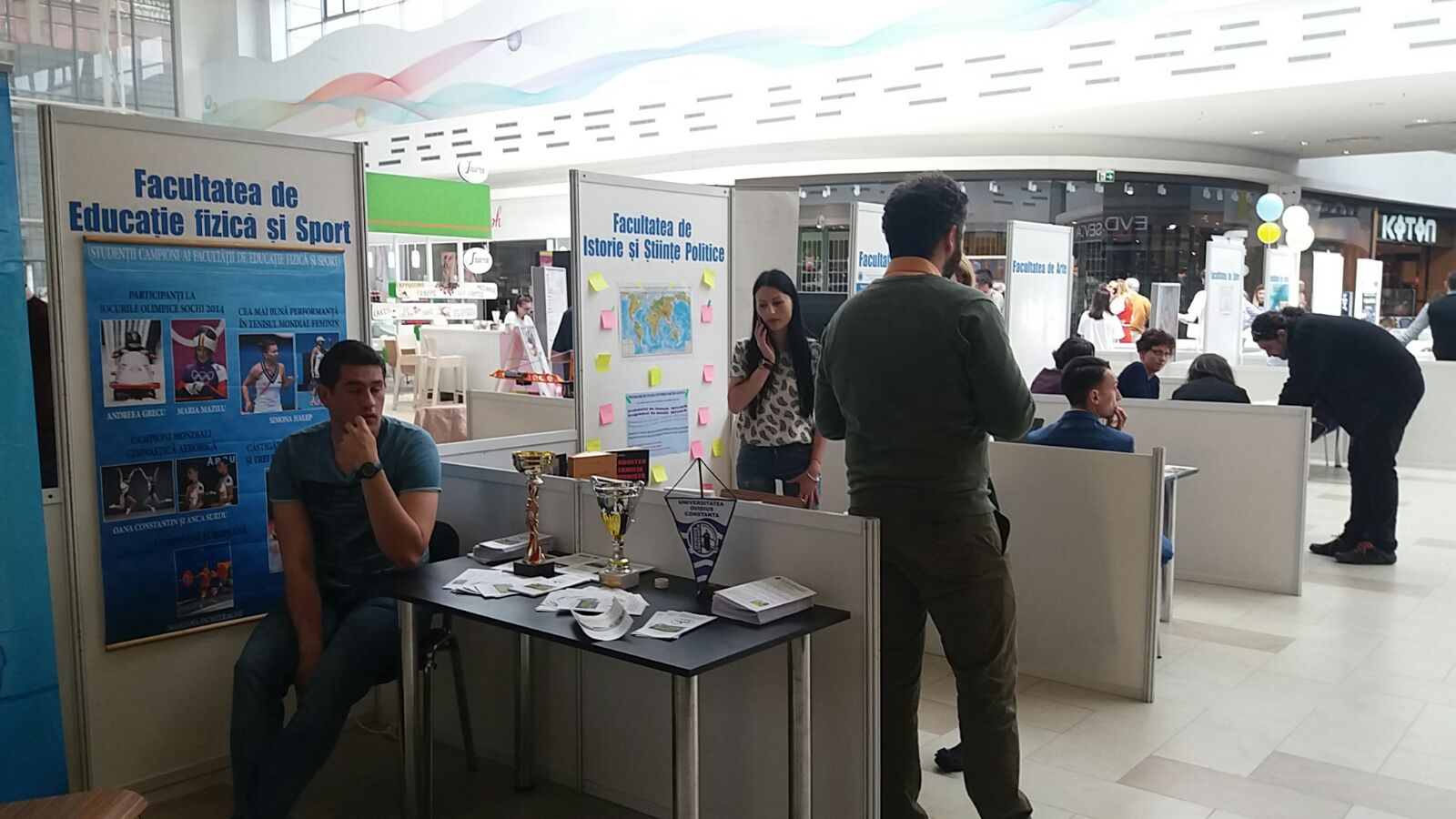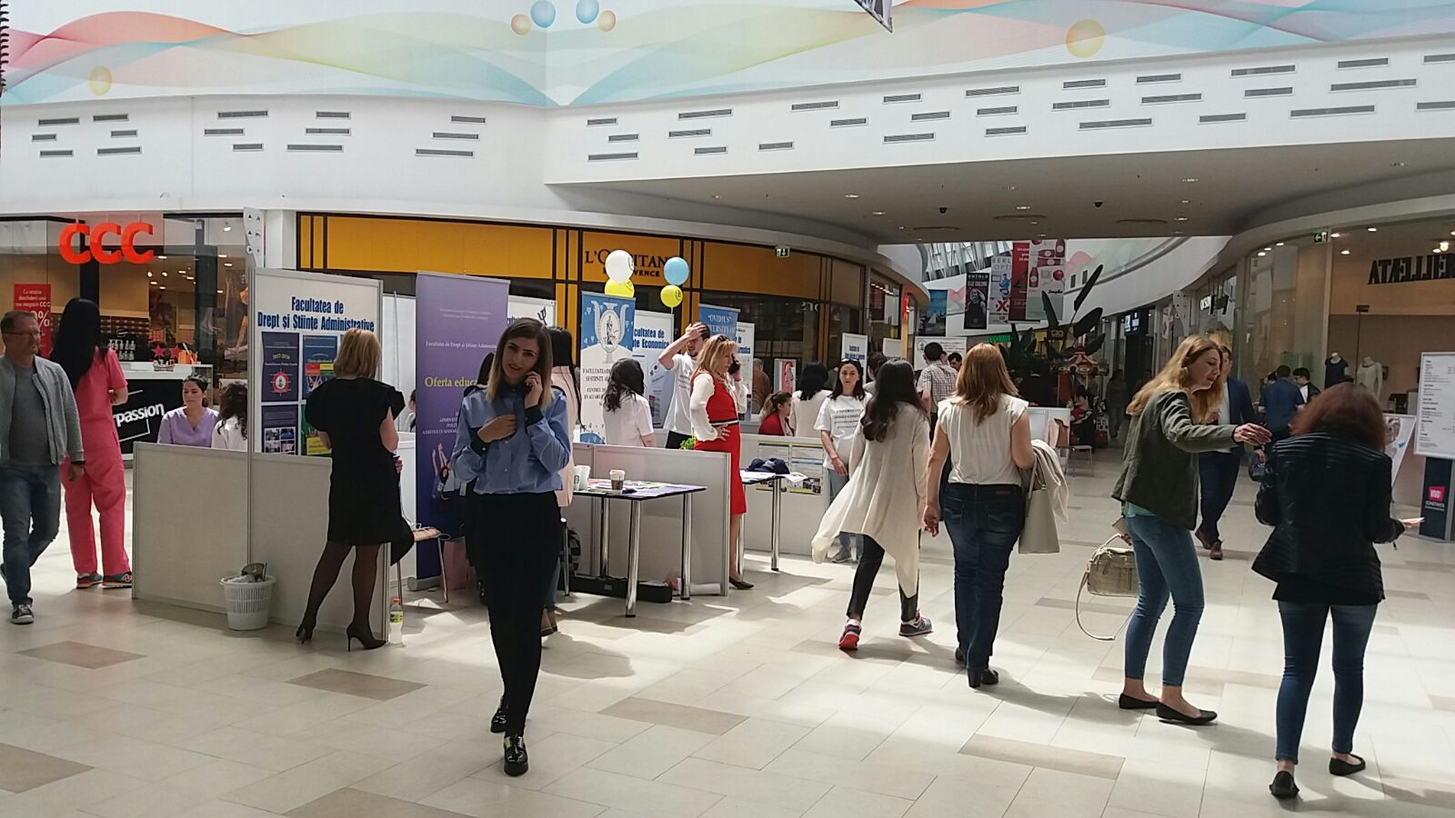 Cei interesaţi sunt asteptati astăzi, până la ora 22, la standurile celor 16 facultăţi, de la Târgul Ofertei Educaţionale, organizat în centrul comercial de pe Bulevardul Aurel Vlaicu.