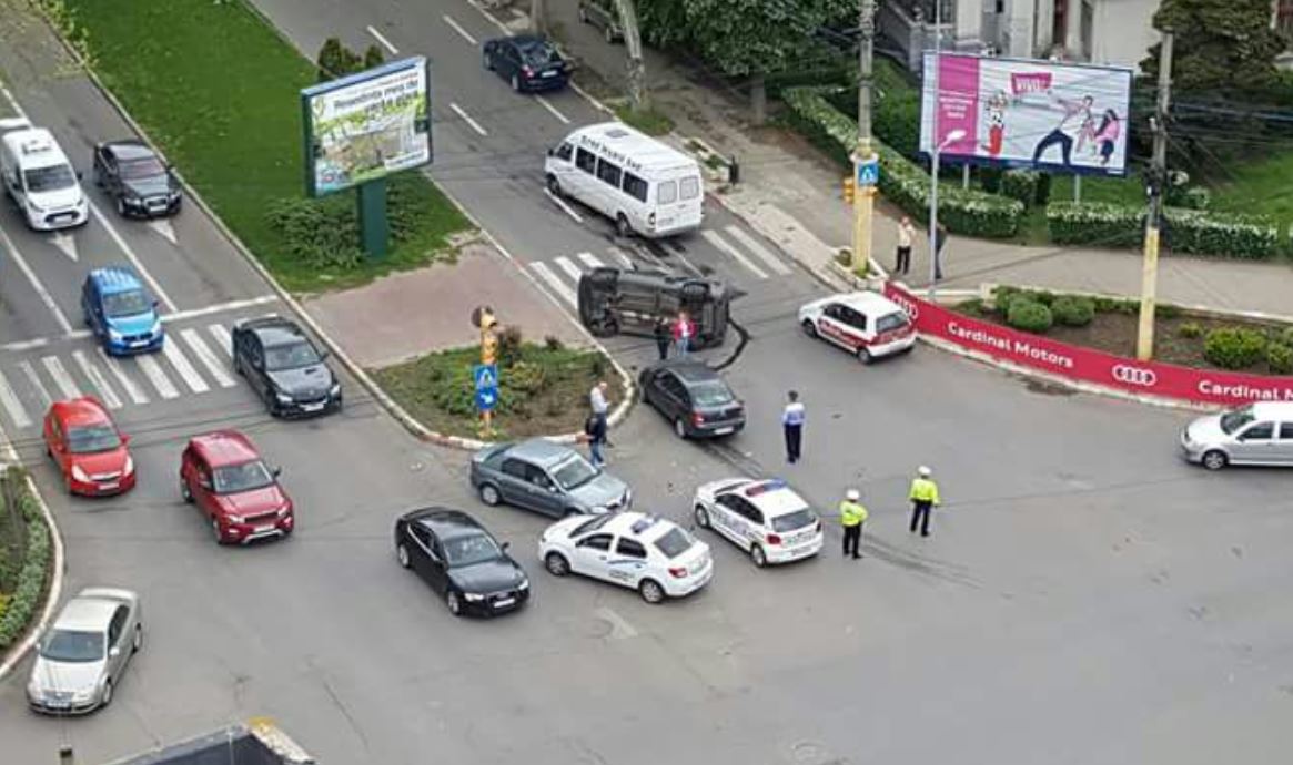 FOTO/Mașină RĂSTURNATĂ în intersecție, la Capitol!