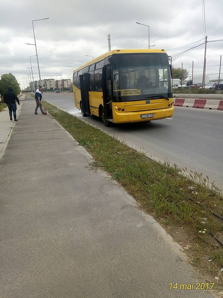 Un autobuz al uneia dintre societățile de transport care efectuează curse regulate de persoane între Constanța și Năvodari a fost la un pas să ia foc, duminică, la amiază.