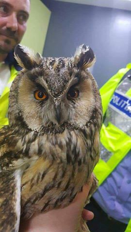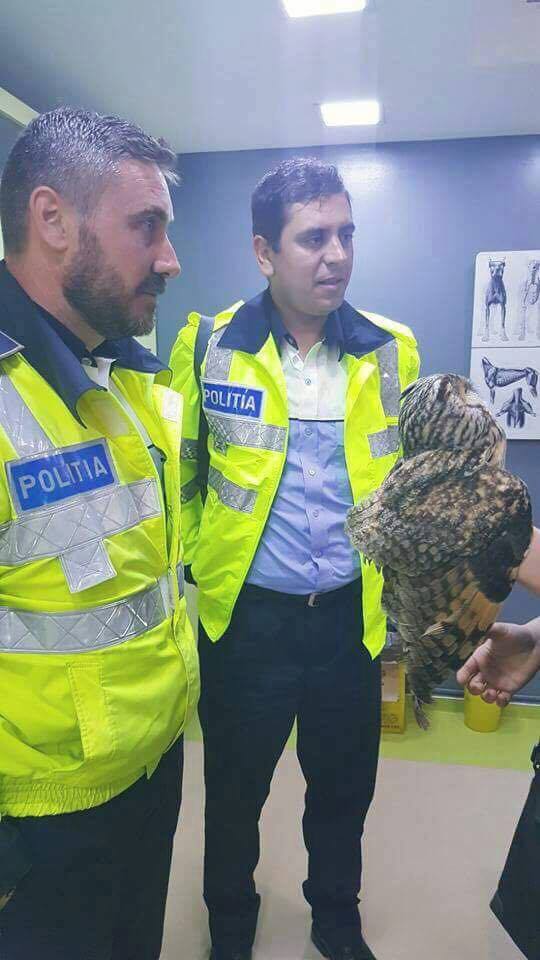 Agentul șef adjunct de poliție Marin Bogdan și agentul de poliție Lupu Adrian, au găsit joi seara, 11 mai, în zona kilometrului 20 al Autostrăzii A2, pe banda 1… o bufniță.
