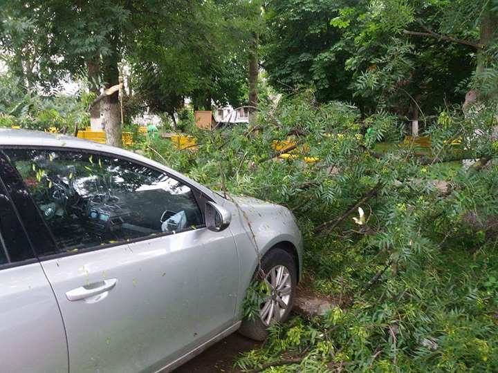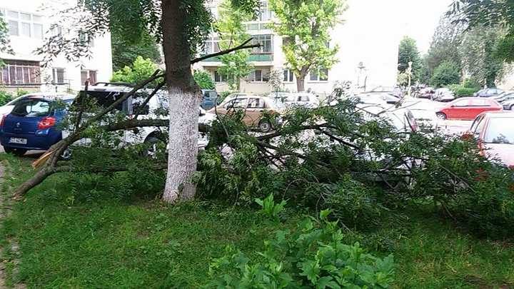 Un autoturism a fost pus la pământ de furtuna de aseară. Imaginile sunt susprinse în cartireul Tomis Nord.