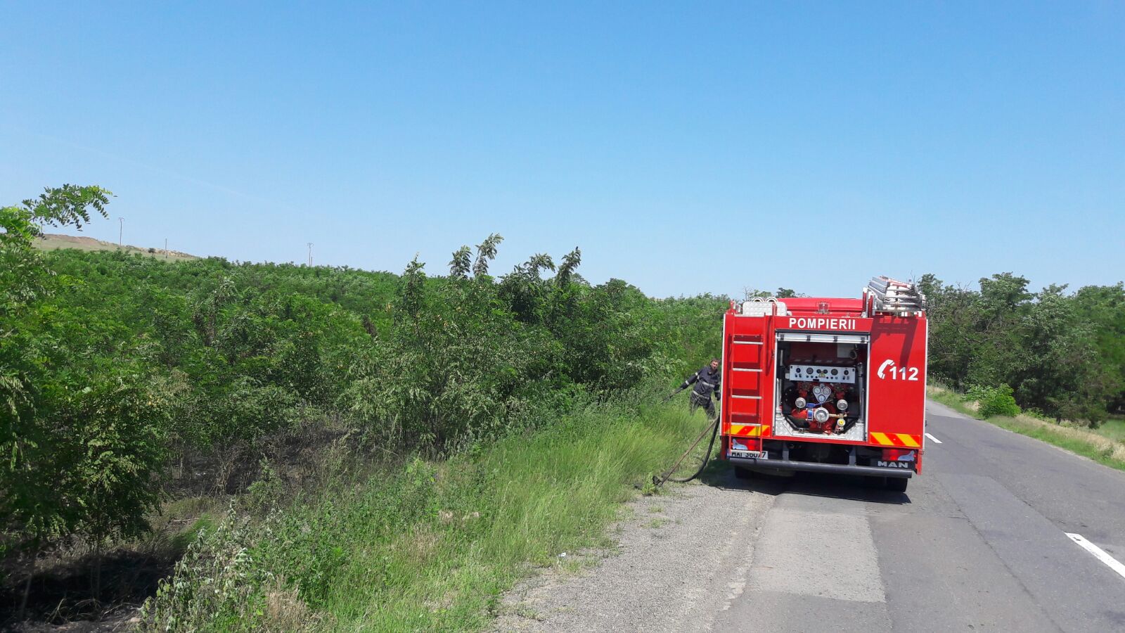 Datorită intervenției prompte a pompierilor, incendiul nu s-a extins la pădurea de salcâmi din apropiere.