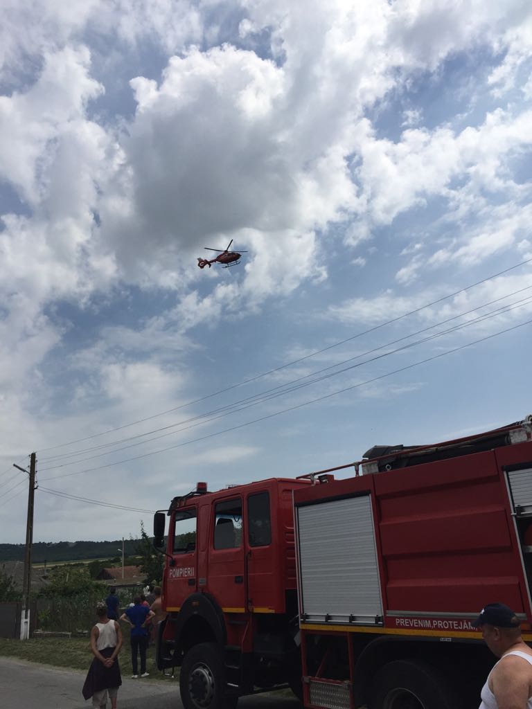 Două persoane prezintă răni foarte grave, fiind solicitat elicopterul SMURD.