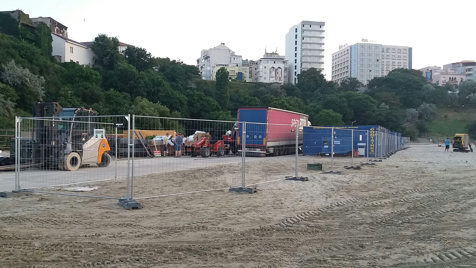 Plaja Modern din Constanța este, de câteva zile, un adevărat șantier. Organizatorii NEVERSEA lucrează la foc continuu pentru pregătirea a ceea ce se vrea cel mai mare festival de muzică de pe litoral. Ei ar fi cerut reprezentanților Primăriei, spun unele surse, să repare scările care coboară de pe strada Mircea cel Bătrân pe plajă și să curețe de gunoaie și mizerie taluzurile.