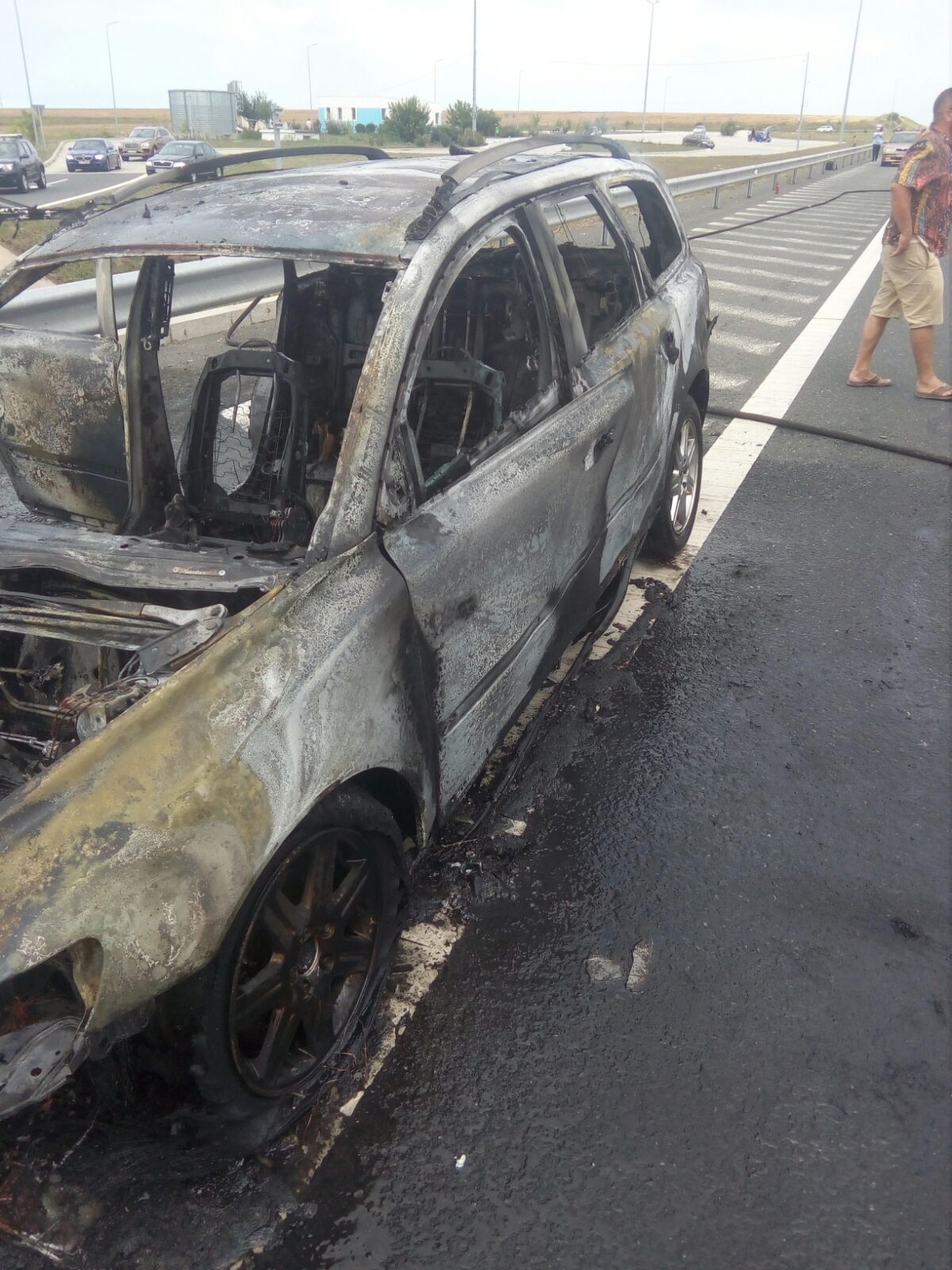 Un autoturism a luat foc în urmă cu puțin timp pe Autostrada Soarelui, la km 206, pe sensul Constanța – București.