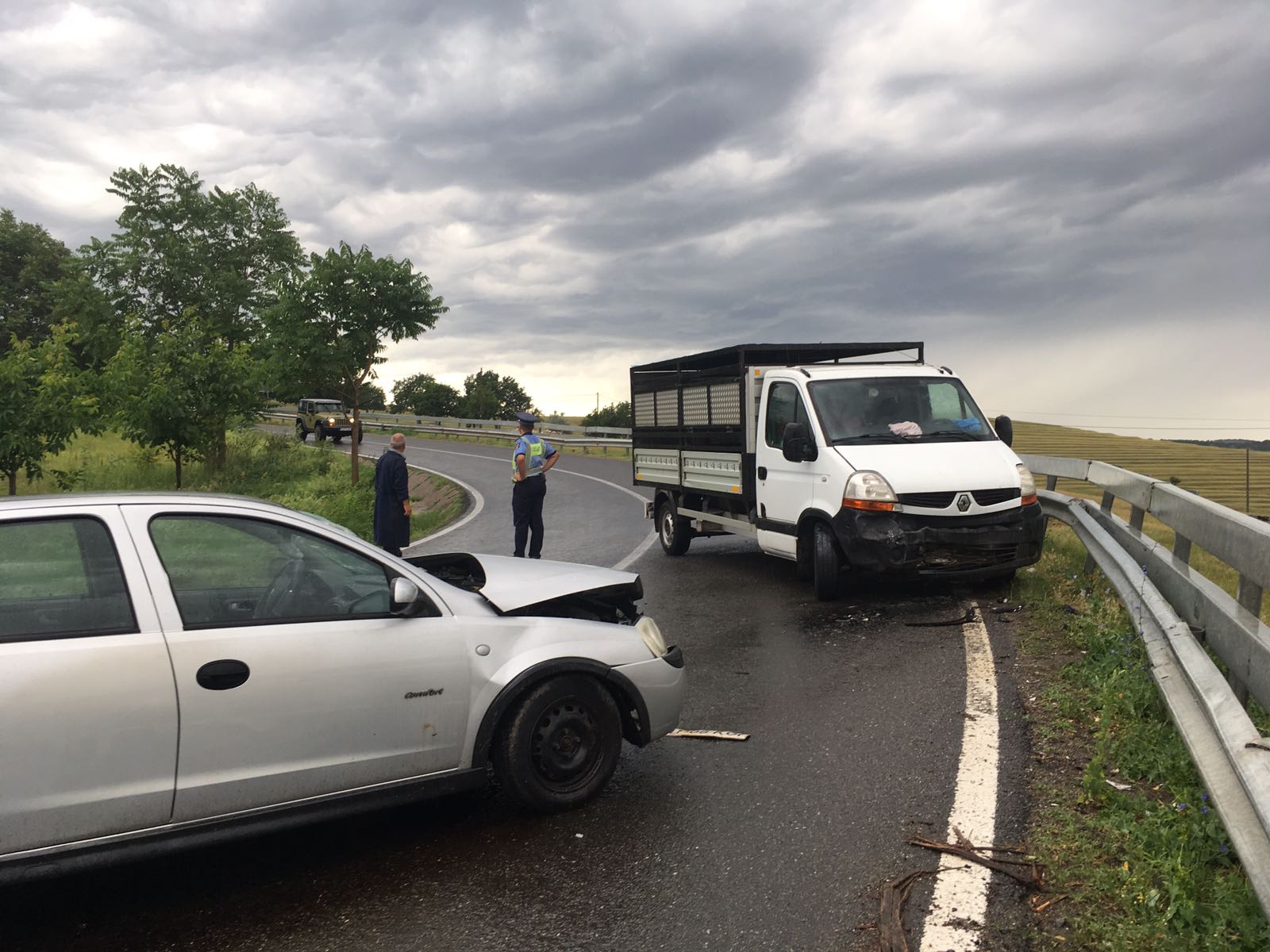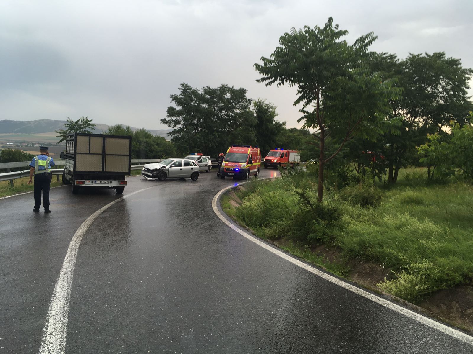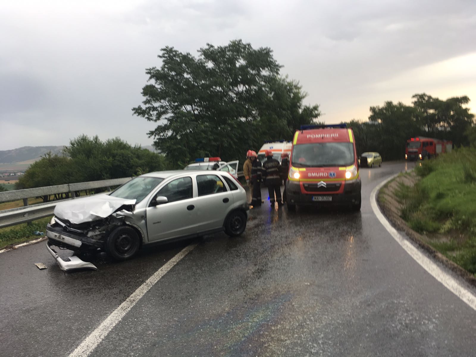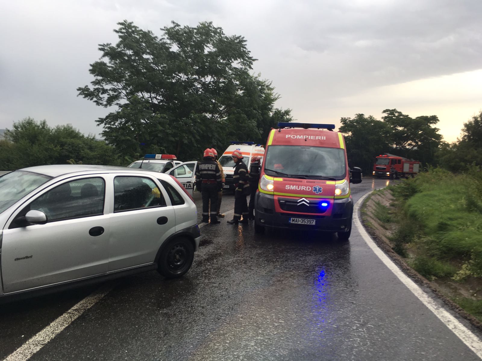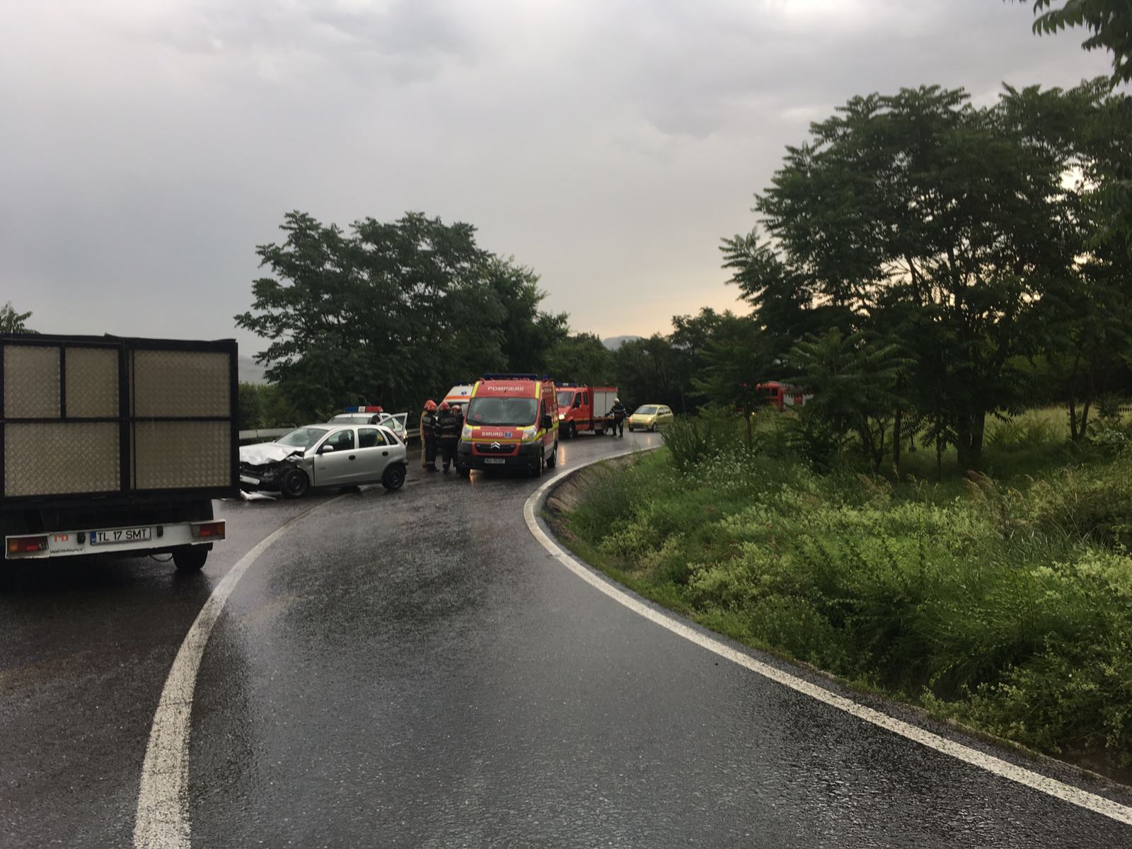 În accident este implicată o camionetă de 3,5 tone și un Opel Corsa cu numere Neamț. Pompierii spun că sunt trei victime în turism, un bărbat, o femeie și un copil, dar sunt în stare bună.