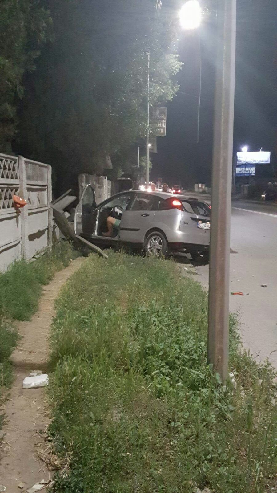 Șoferul unui autoturism a pierdut controlul volanului, probabil din cauza vitezei excesive, a pătruns pe contrasens, a părăsit carosabilul și s-a oprit în gardul de beton al unei societăți comerciale, spulberând nu mai puțin de trei segmente din acesta, după cum se poate observa din fotografie.