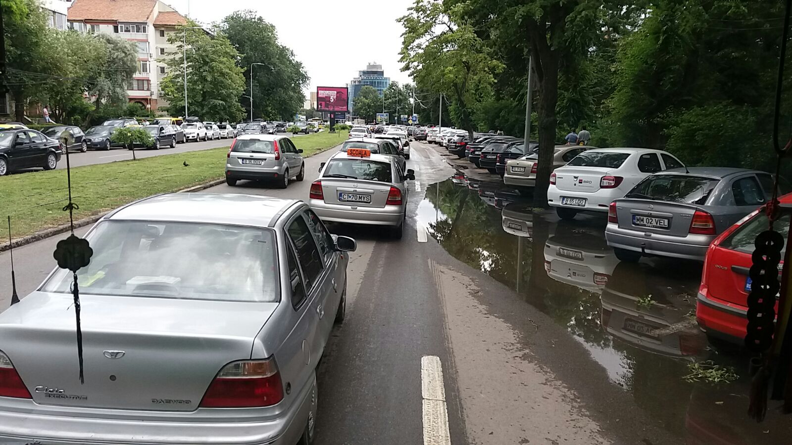 Astfel, cozile de mașini se întind pe mai bine de 100 de metri până în semafoarele din zona Delfinariu, pe sensul de mers spre strada Ion Rațiu. Aceeași situație se întâlnește și pe celălalt sens de mers, unde se circulă bară la bară.