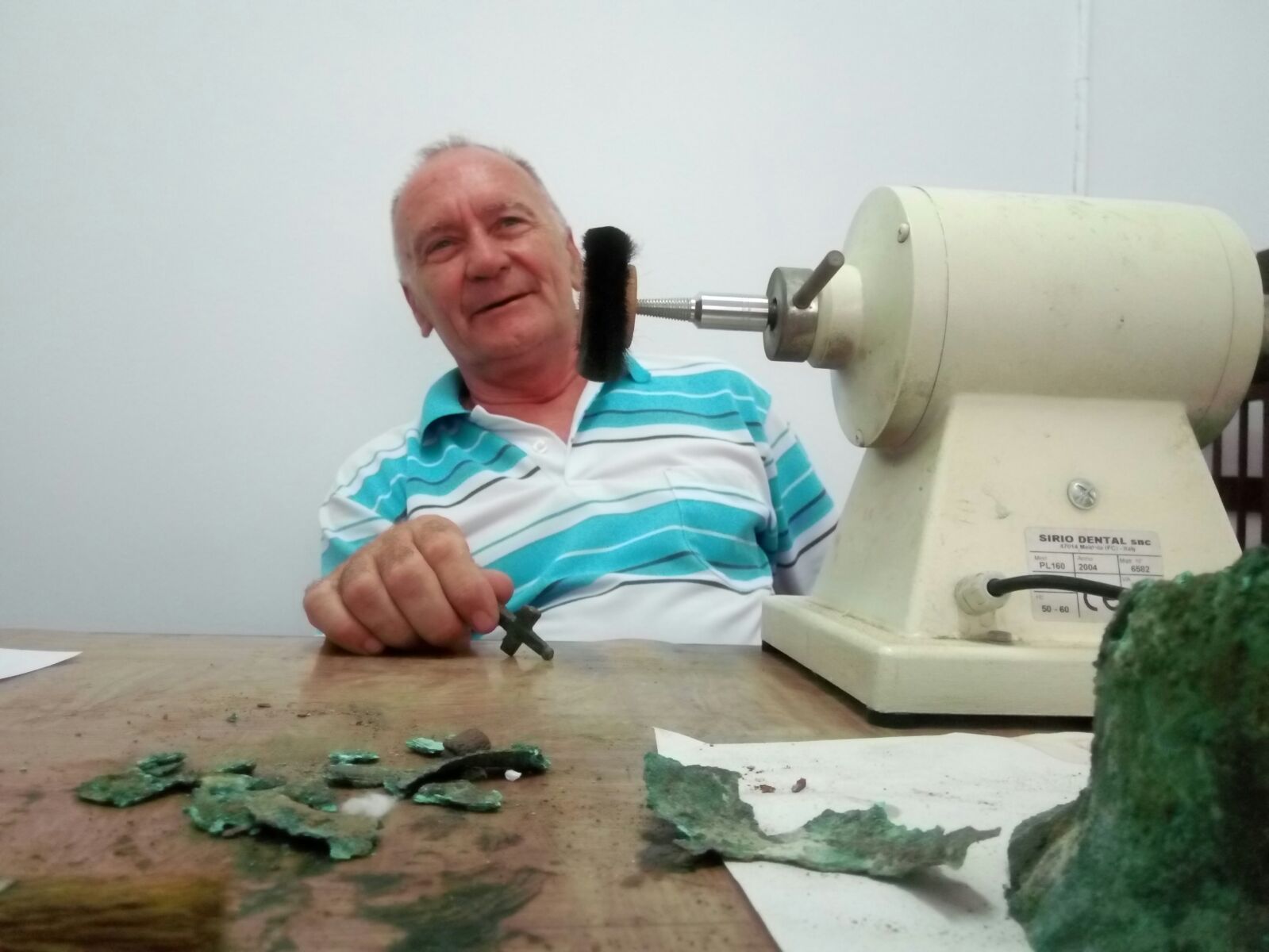 Dan Ionescu este singurul restaurator de metale avizat din Constanța. Poate transforma un pumn de așchii metalice, într-o piesă veritabilă, așa cum a fost ea folosită în trecut. O zăbală din fier de acum 2.000 de ani, o broșă a unui înalt prelat roman, un cazan scitic, sau un tezaur monetar cu 7.000 de piese sunt doar câteva dintre realizările sale.