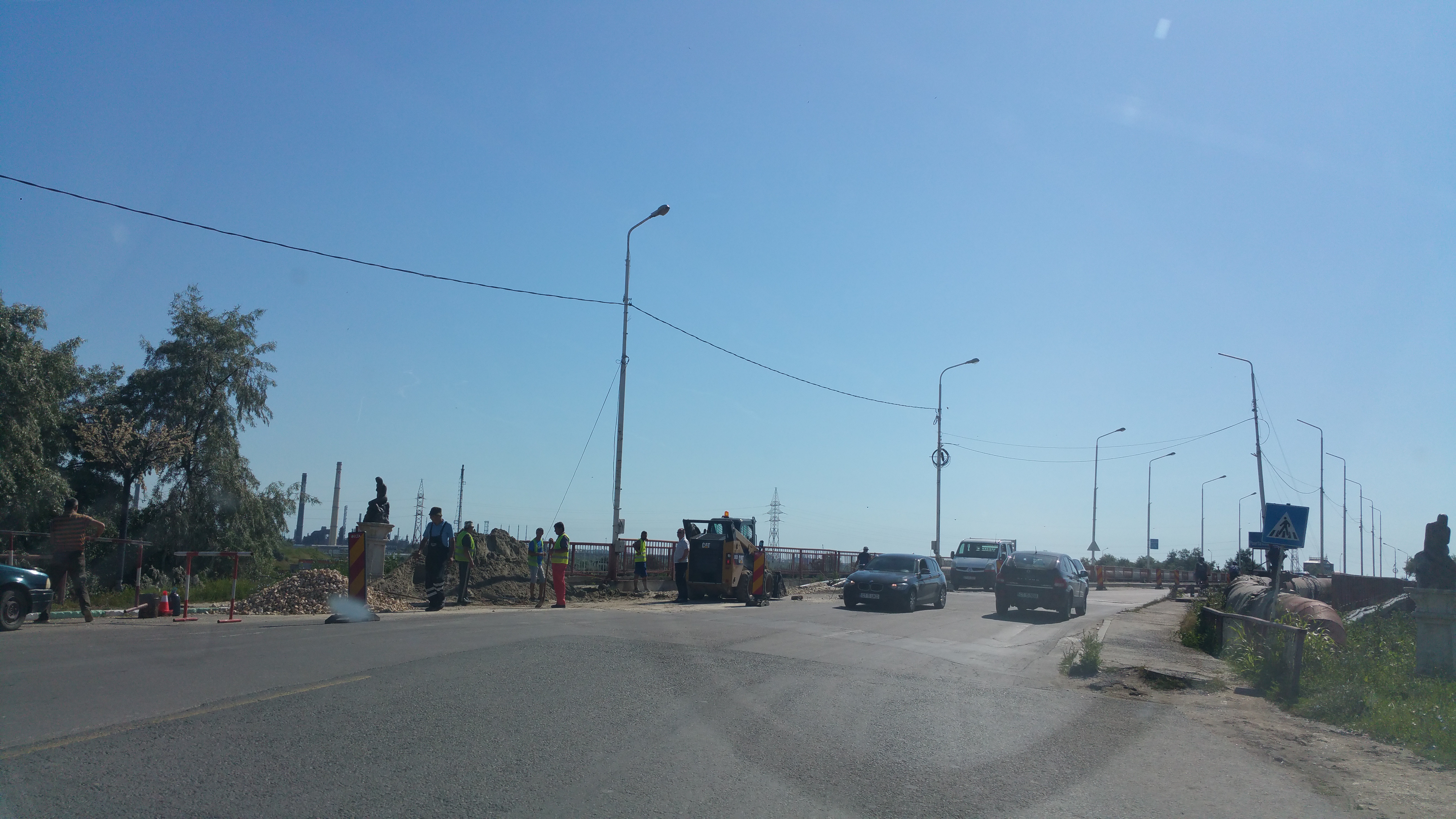 În această dimineață, mai multe utilaje se aflau pe pod, așteptând ordinul de începere a lucrărilor.