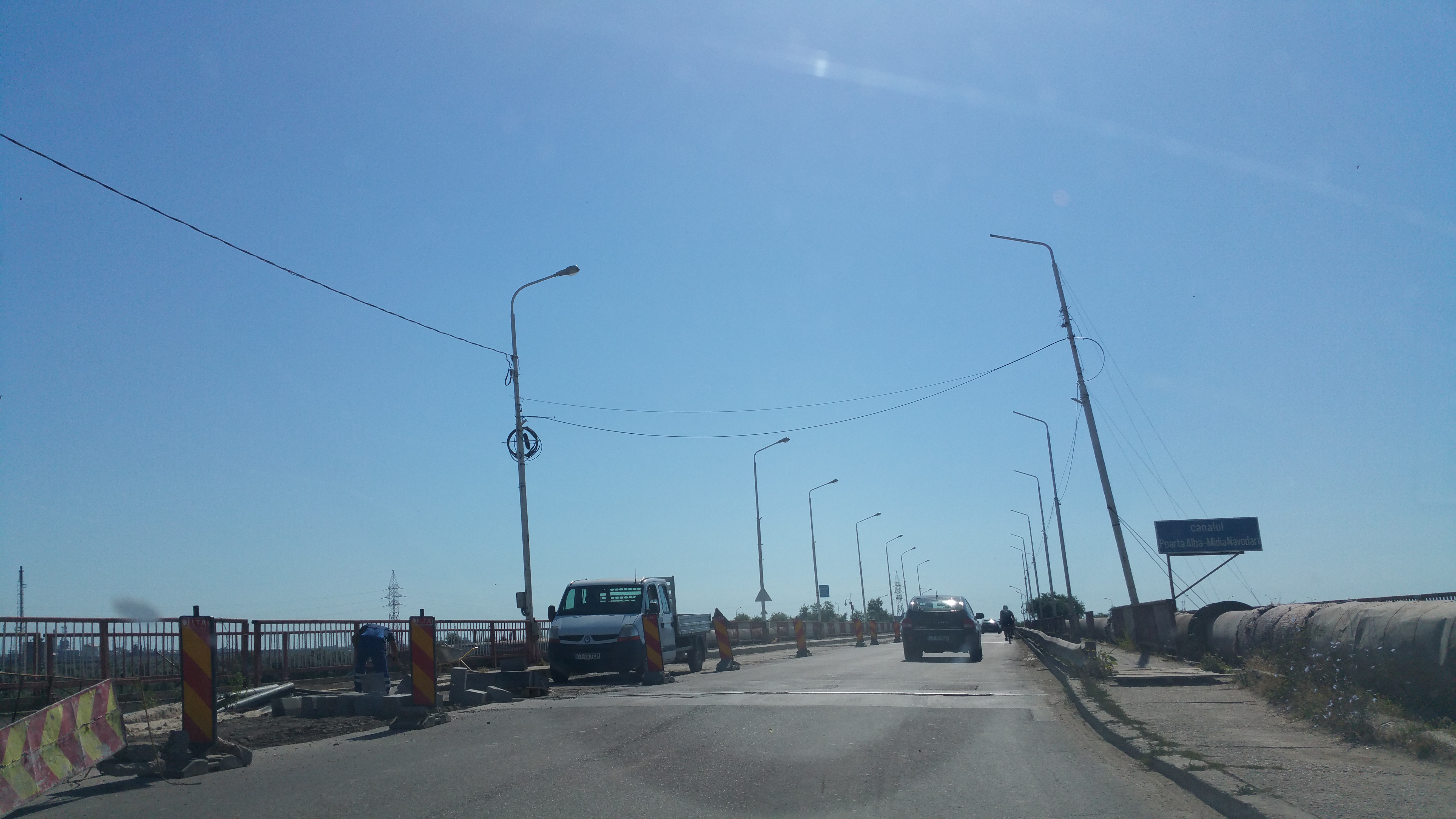 Constructorul care trebuie să reabiliteze podul peste Canalul Poarta Albă-Midia de la Năvodari a avut termen ca astăzi să se apuce de plombat și de refăcut a treia cale de rulare. Conform declarației primarului Florin Chelaru lucrările de plombare ar trebui încheiate în două zile.
