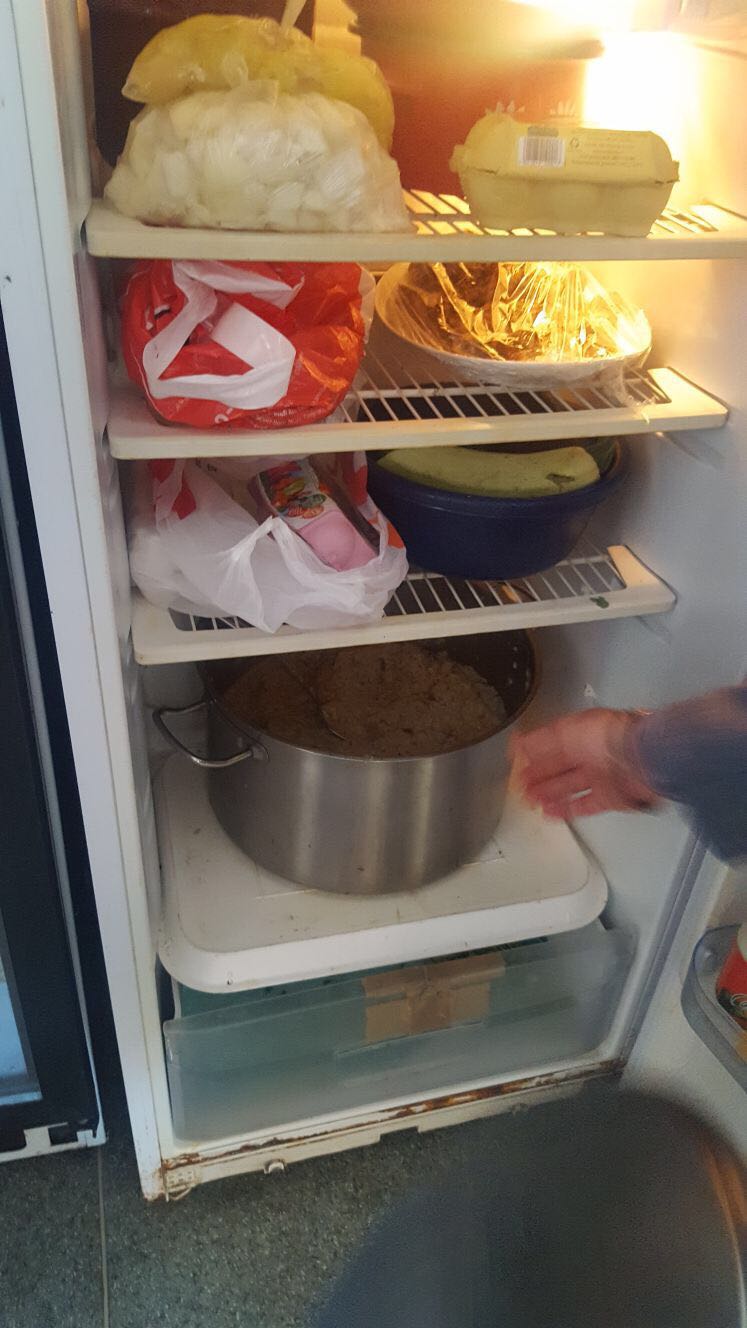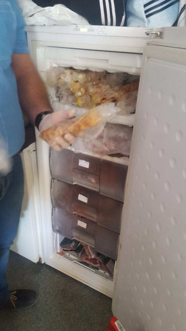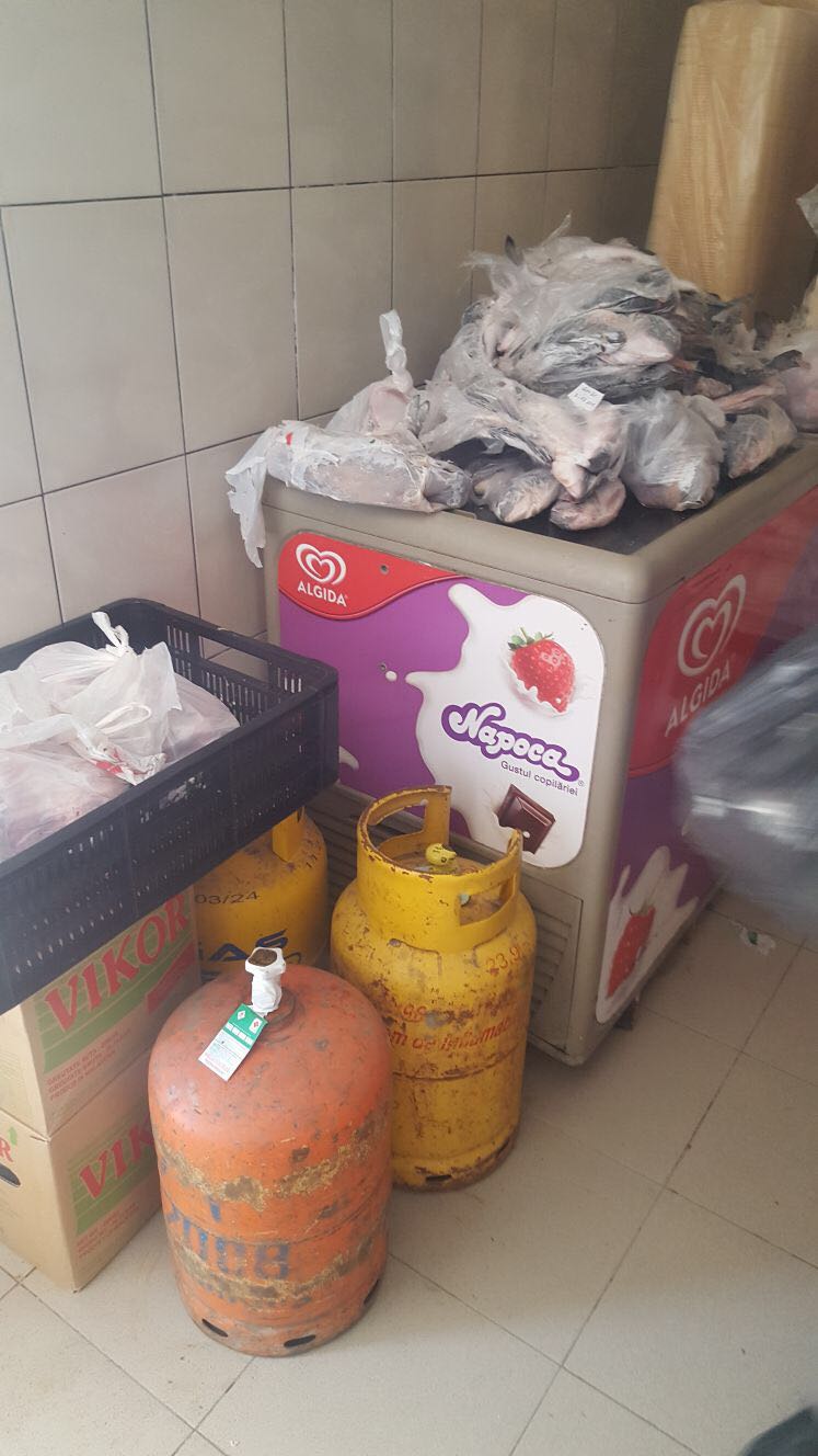 Vă lăsăm pe dumneavoastră să le interpretați. Amintim că autoritățile au găsit aici dezastru: alimente expirate sau depozitate necorespunzător din punct de vedere igienico-sanitar și mizerie de nedescris. Poate cea mai grăitoare imagine este cea cu ușa defectă a unui frigider, proptită de un perete, cu un par, ca să stea închisă!