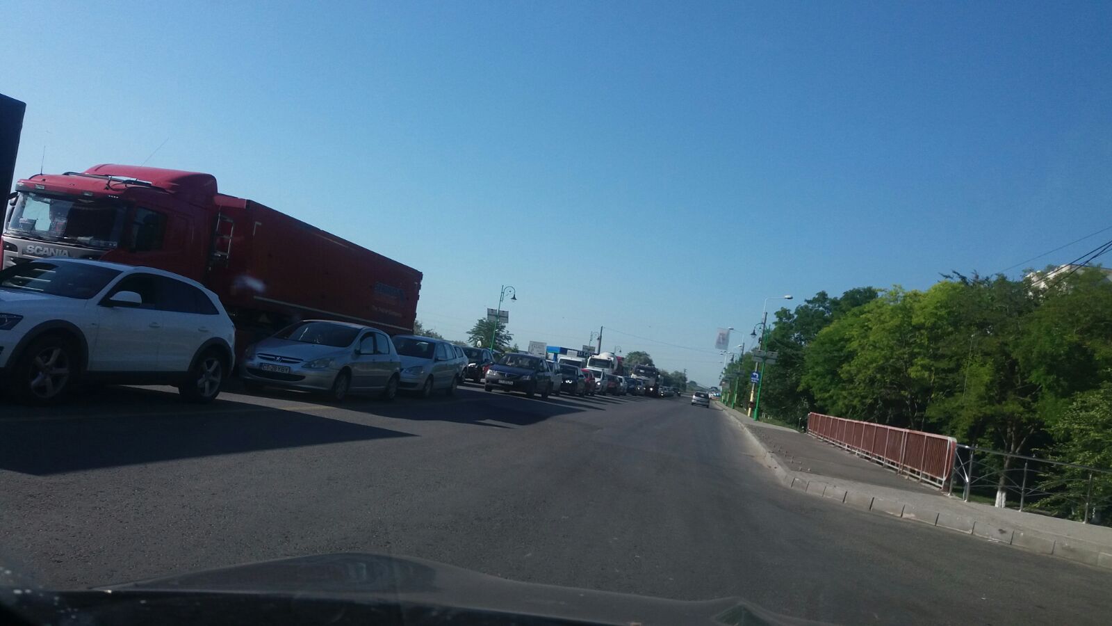 Trafic infernal, joi dimineața, pe DJ 226, în Năvodari. Cozile de mașini se întind de la intrarea în oraș dinspre localitatea Lumina până la podul peste canal, unde șoseaua se bifurcă spre Mamaia și platforma industrială.