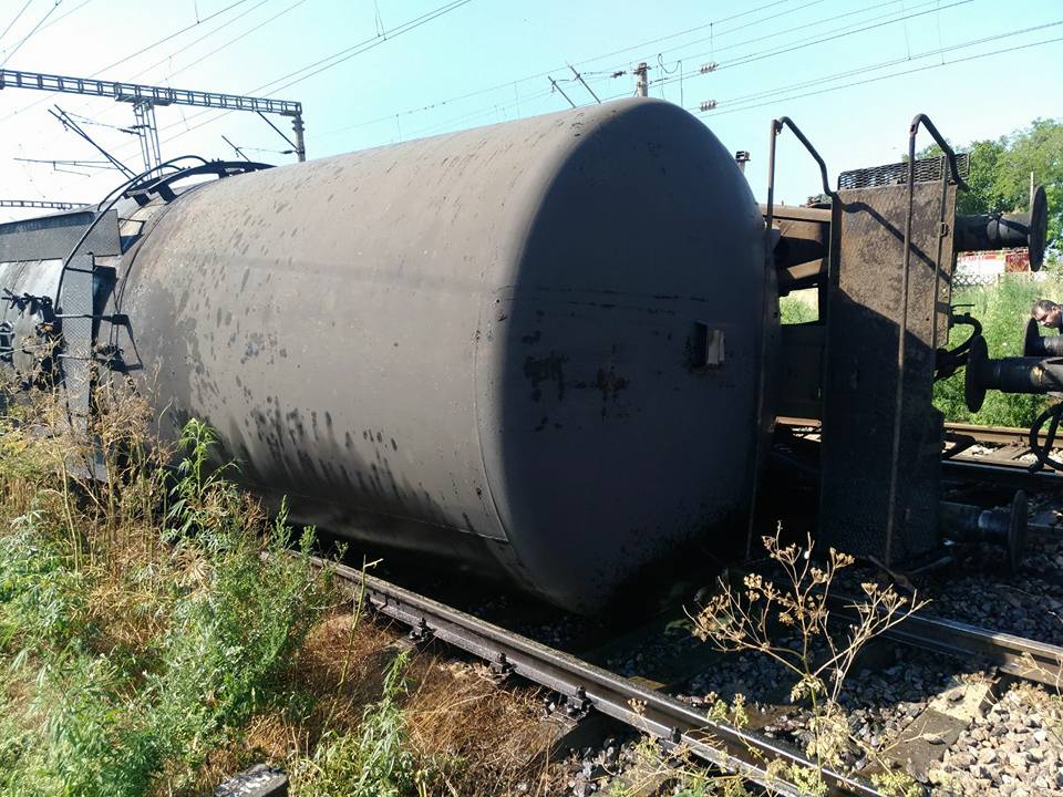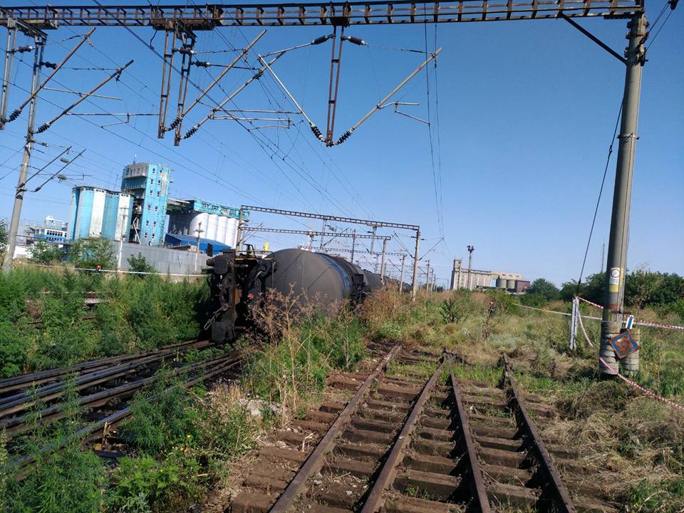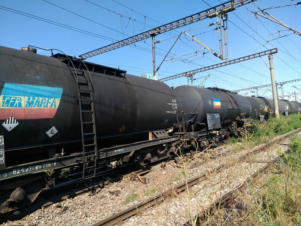 Două dintre vagoanele cisternă s-au răsturnat pe calea ferată, informează CFR Călători.