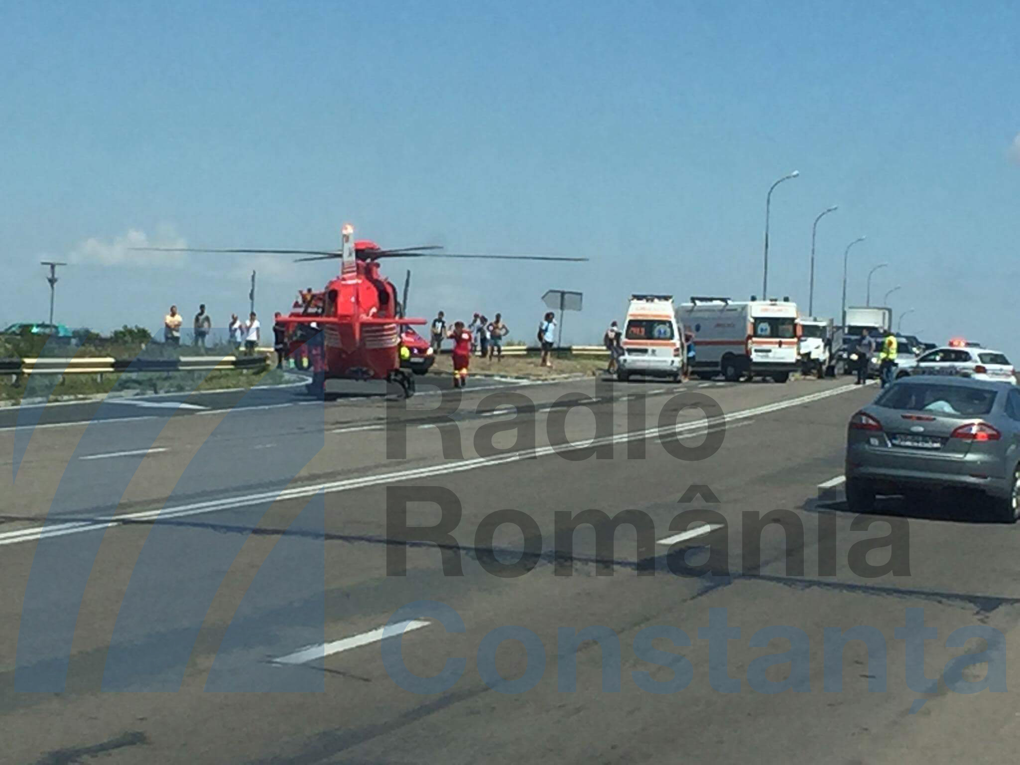 UPDATE! Trafic rutier blocat între Olimp și Mangalia din cauza unui accident grav pe podul de la Neptun. Intervine elicopterul SMURD