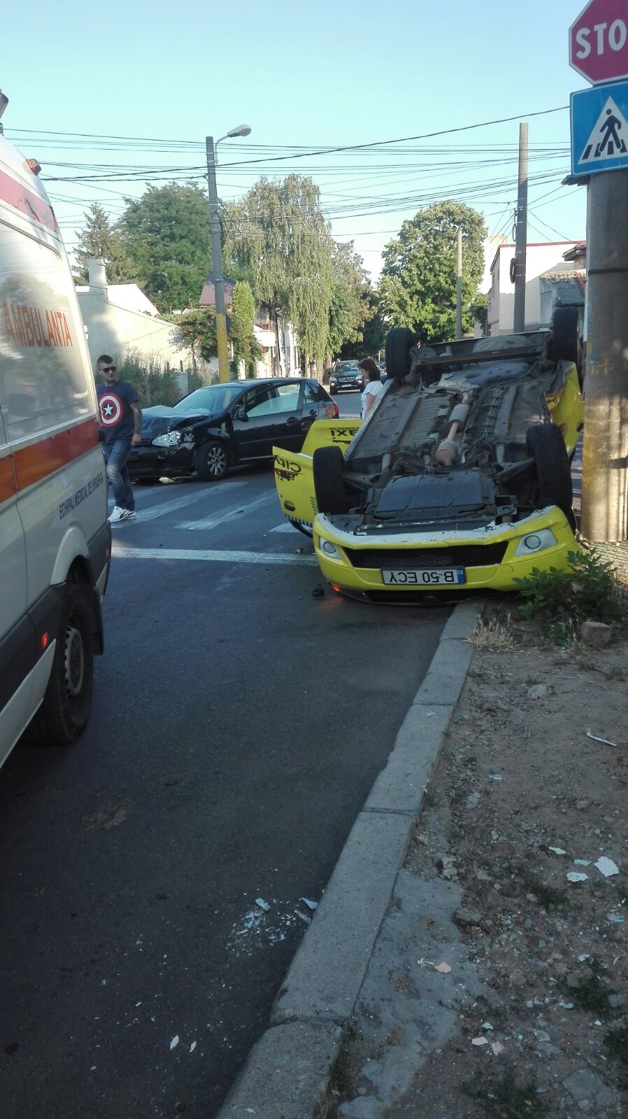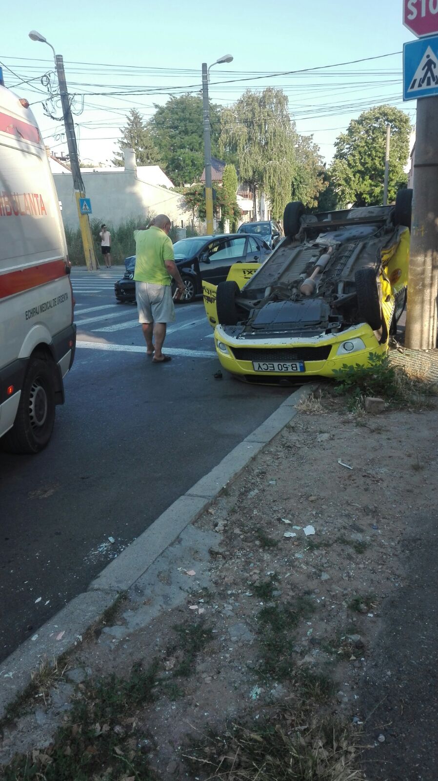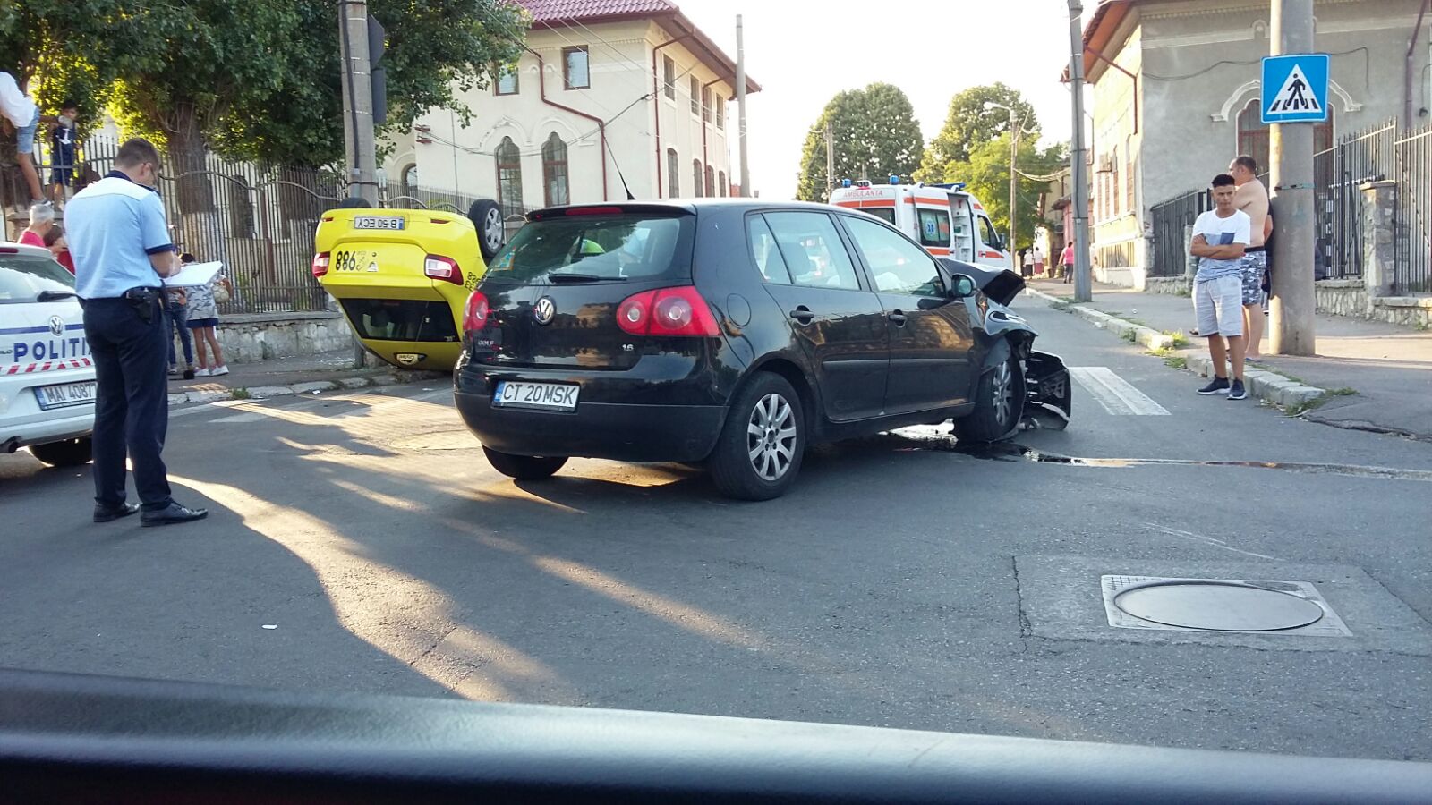 FOTO – Accident GRAV: Un taxi s-a răsturnat într-o intersecție din CONSTANȚA