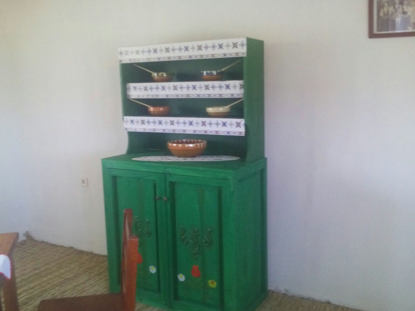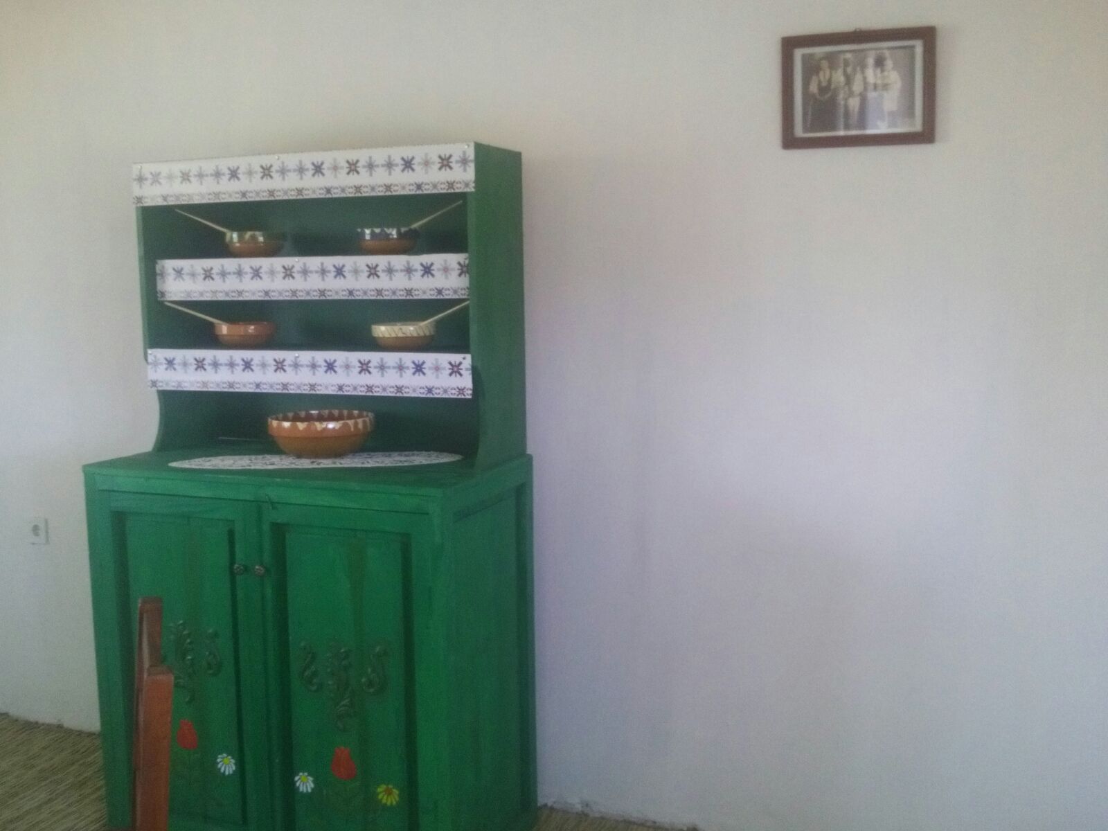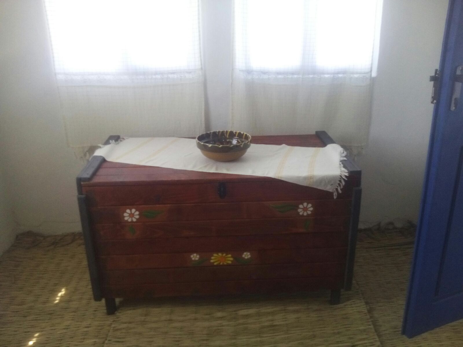 Interioarele au rogojini pe jos, iar acoperișul este din stuf, în timp ce mobilierul este cel tradițional.