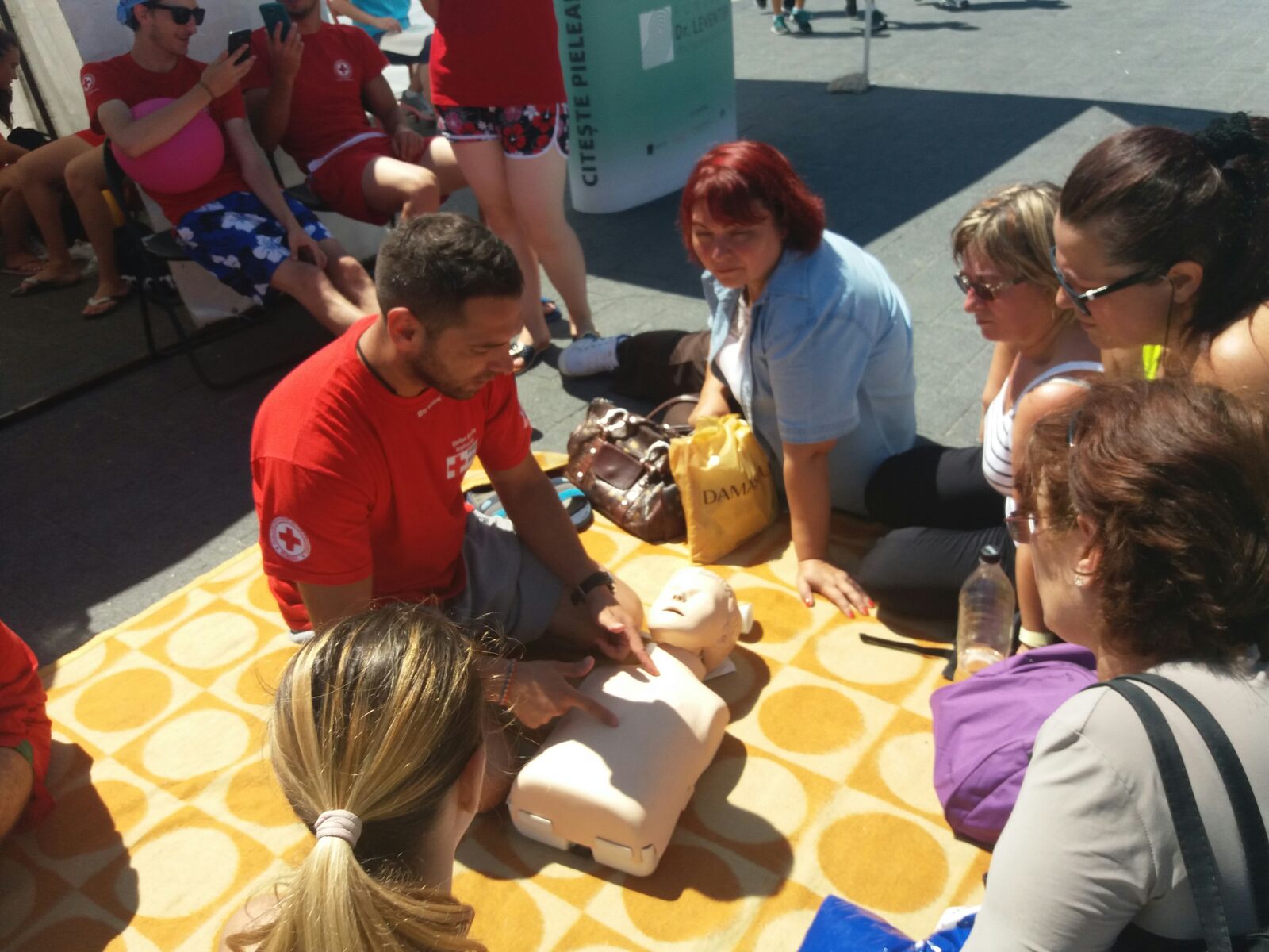 Societatea Naţională de Cruce Roşie din România organizează pe întreg parcursul zilei cursuri de prim ajutor şi resuscitare pentru cei care doresc să înveţe.