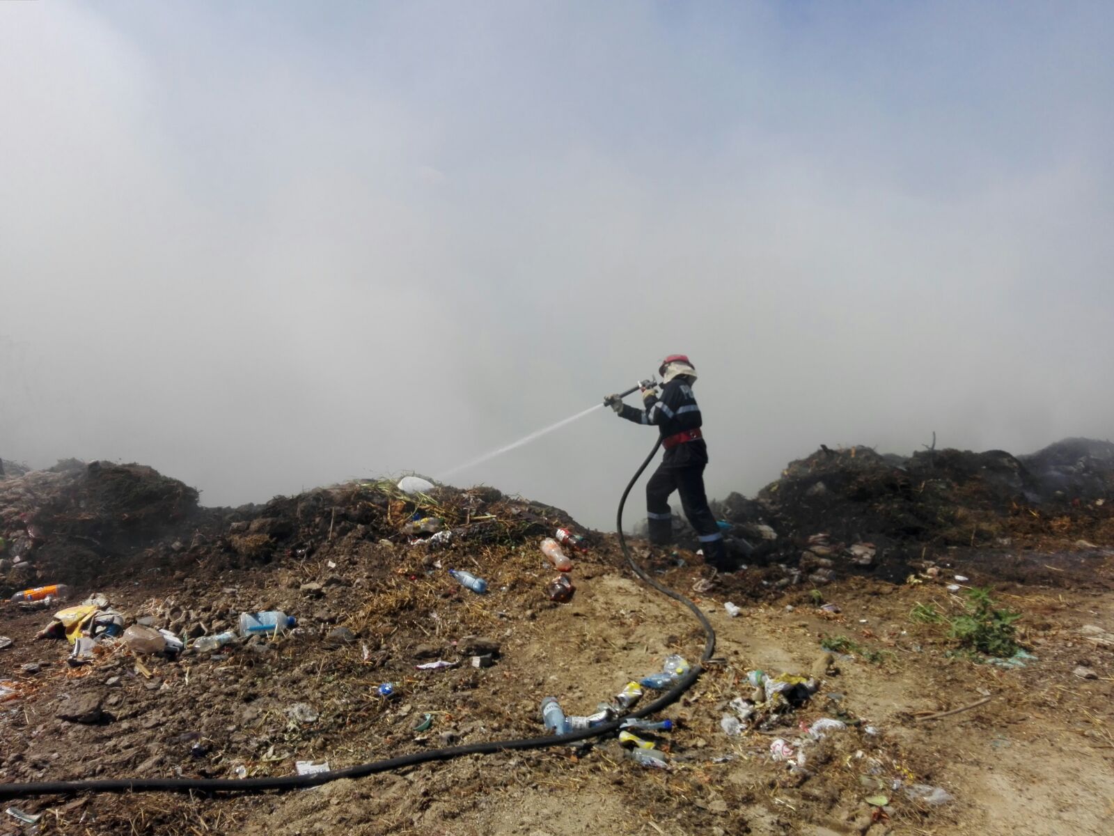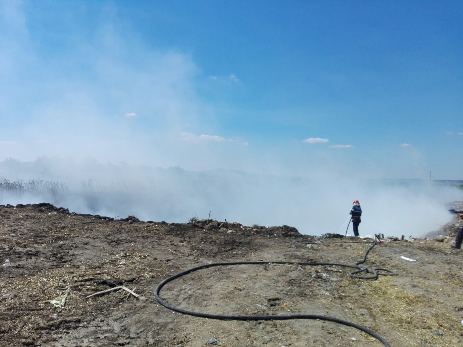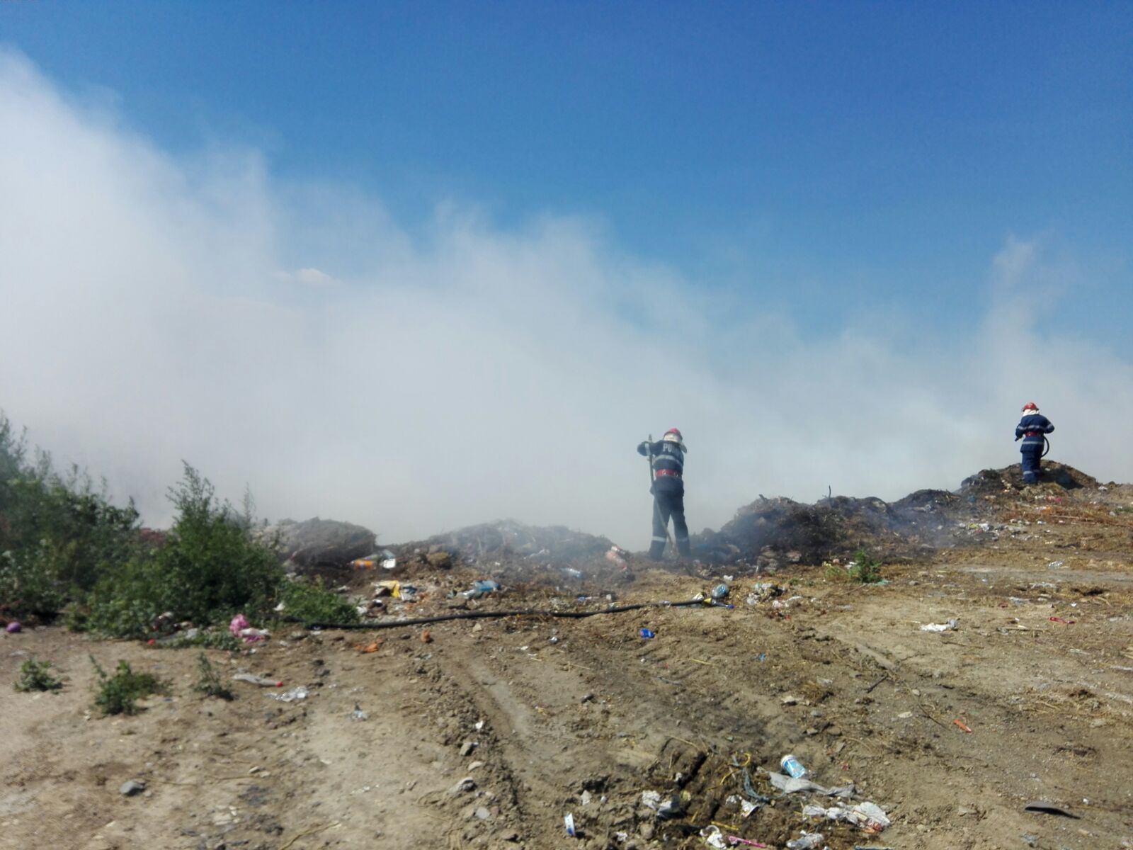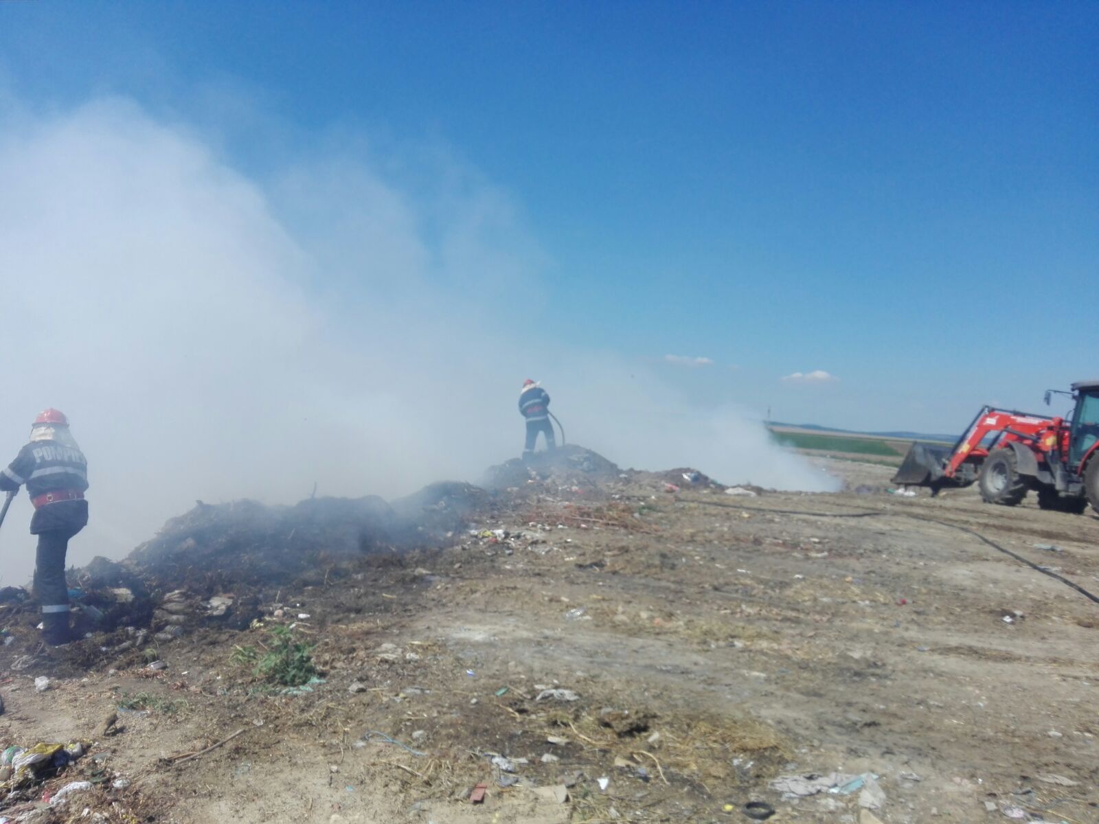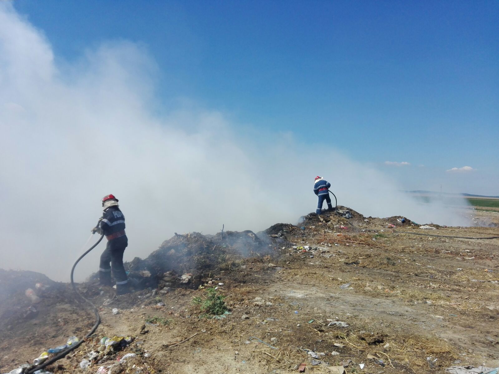 Pompierii de la stația Babadag intervin pentru stingterea unui incendiu izbucnit la groapa de gunoi din localitatea tulceană Ceamurlia de Jos.