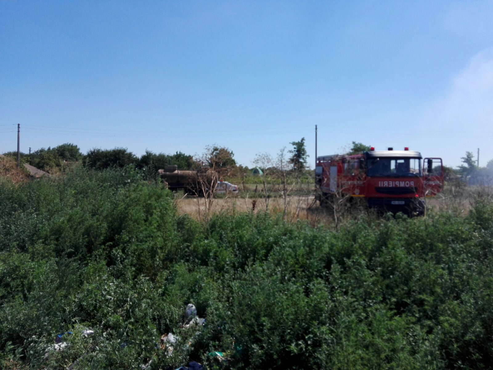 Incendiul se manifestă pe o suprafață aproximativă de 1000 mp. Militarii intervin cu o autospecială și 5 subofițeri.