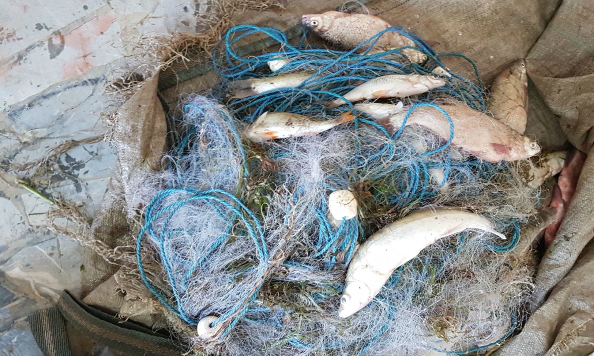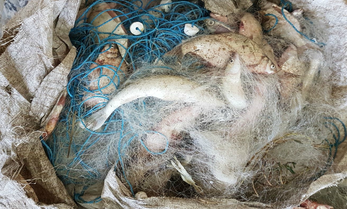 În urma verificării atelajului, au fost descoperite 14 unelte de plasă de tip monofilament, interzise la deținere, în care se aflau 116 kilograme de peşte, din speciile şalău, plătică şi babuşcă, în stare proaspătă, pentru care persoana în cauză nu a putut prezenta documente de provenienţă şi transport.