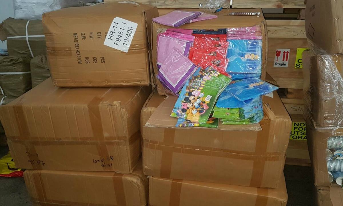 În urma controlului au fost descoperite 286.960 de accesorii pentru petreceri de copii, ce purtau însemnele unei firme renumite şi care sunt susceptibile a fi contrafăcute, cu o valoare totală de aproximativ 1.000.000 lei, dacă ar fi fost originale. Din totalul bunurilor, au fost identificate 73.360 bucăţi bunuri în plus față de cele declarate în documentele vamale.