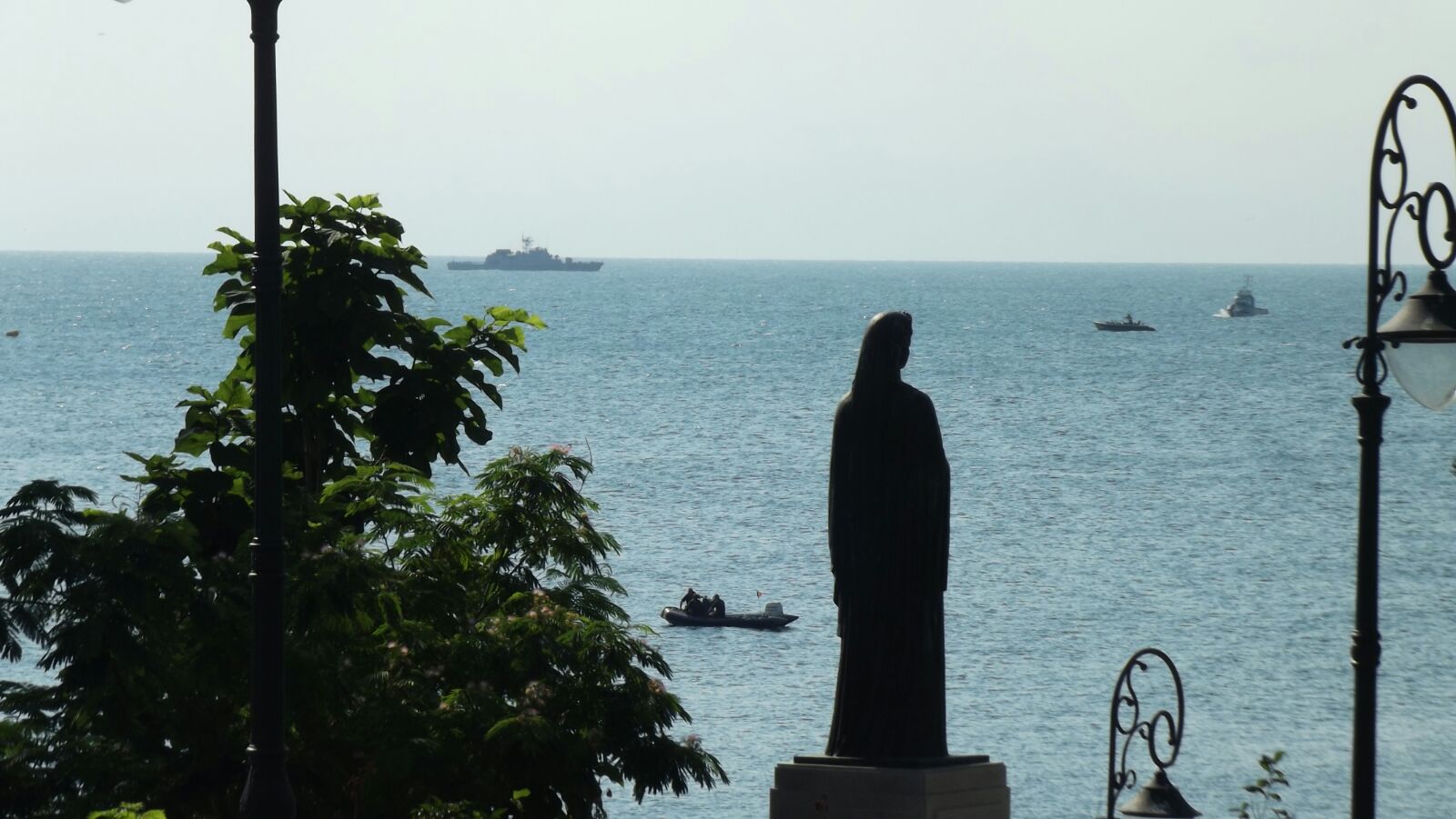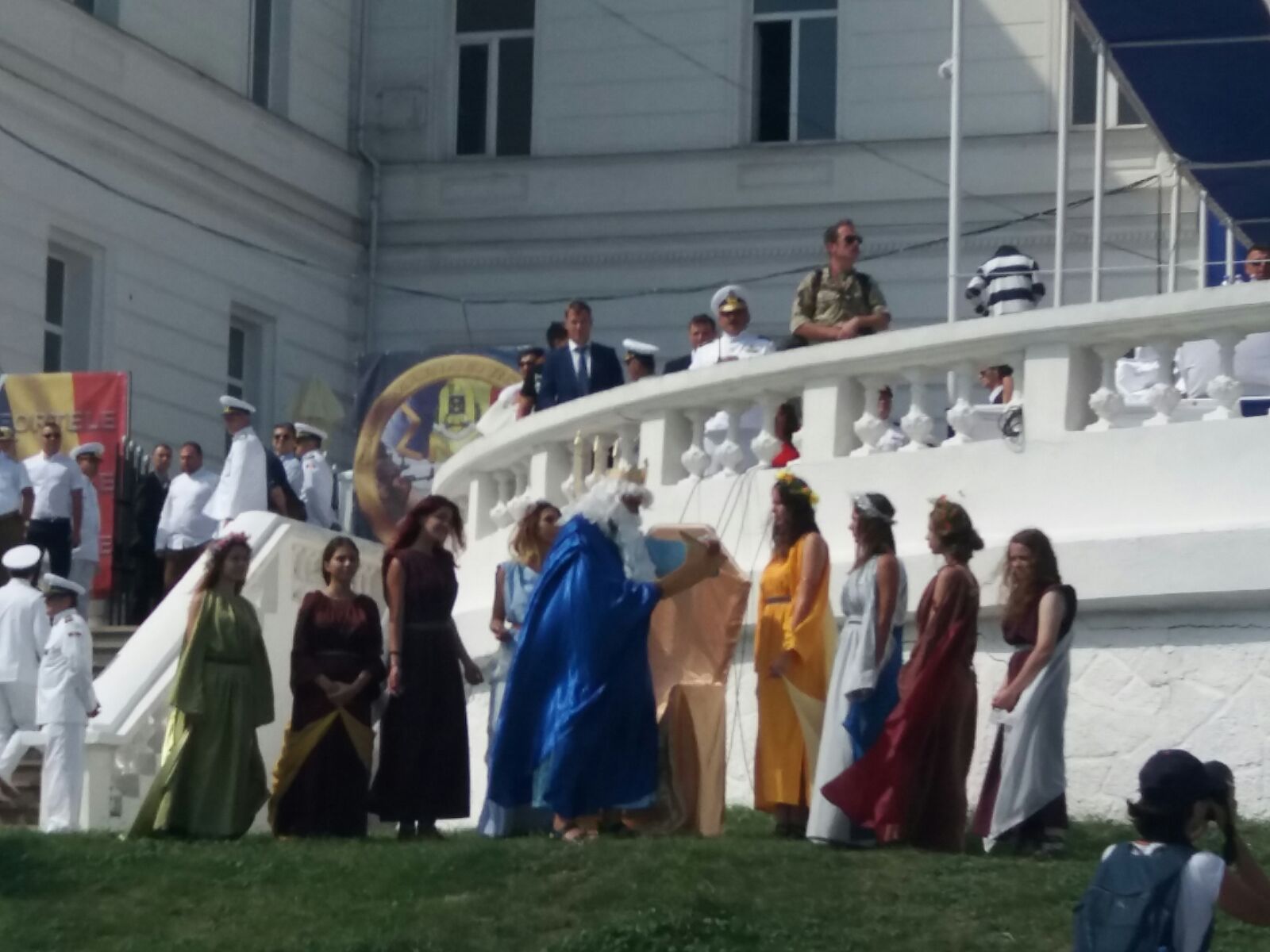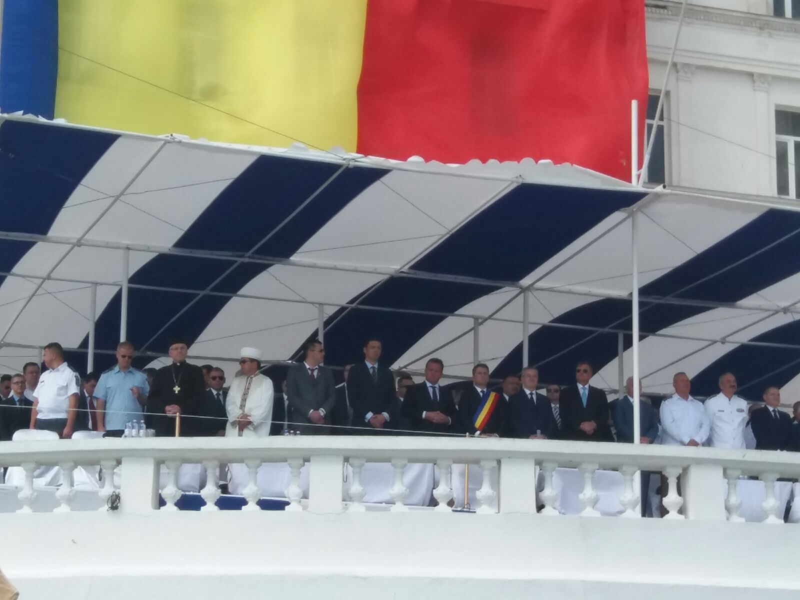 La începutul spectacolului, pe catargul de pe faleză a fost ridicat cel mai mare drapel de la malul Mării Negre, iar la bordul navelor, militarii vor arbora pavilionul, geacul și Marele Pavoaz.
