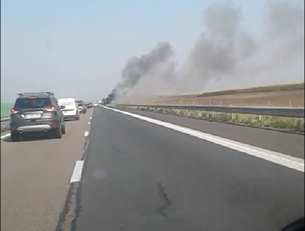 O mașină a luat foc, vineri, pe Autostrada Soarelui la kilometrul 70, pe sensul București – Constanța, pe banda se urgență. Autovehiculele merg în coloană pe ultima bandă cu viteză redusă.