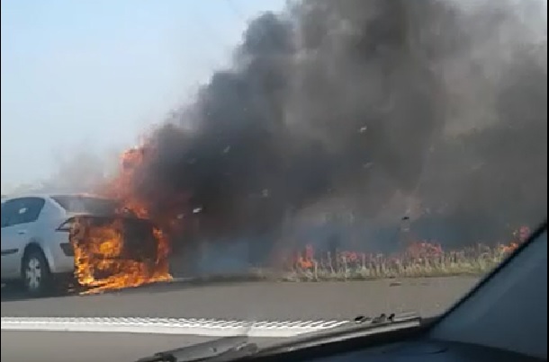 VIDEO/FOTO: Mașină în flăcări pe Autostrada Soarelui