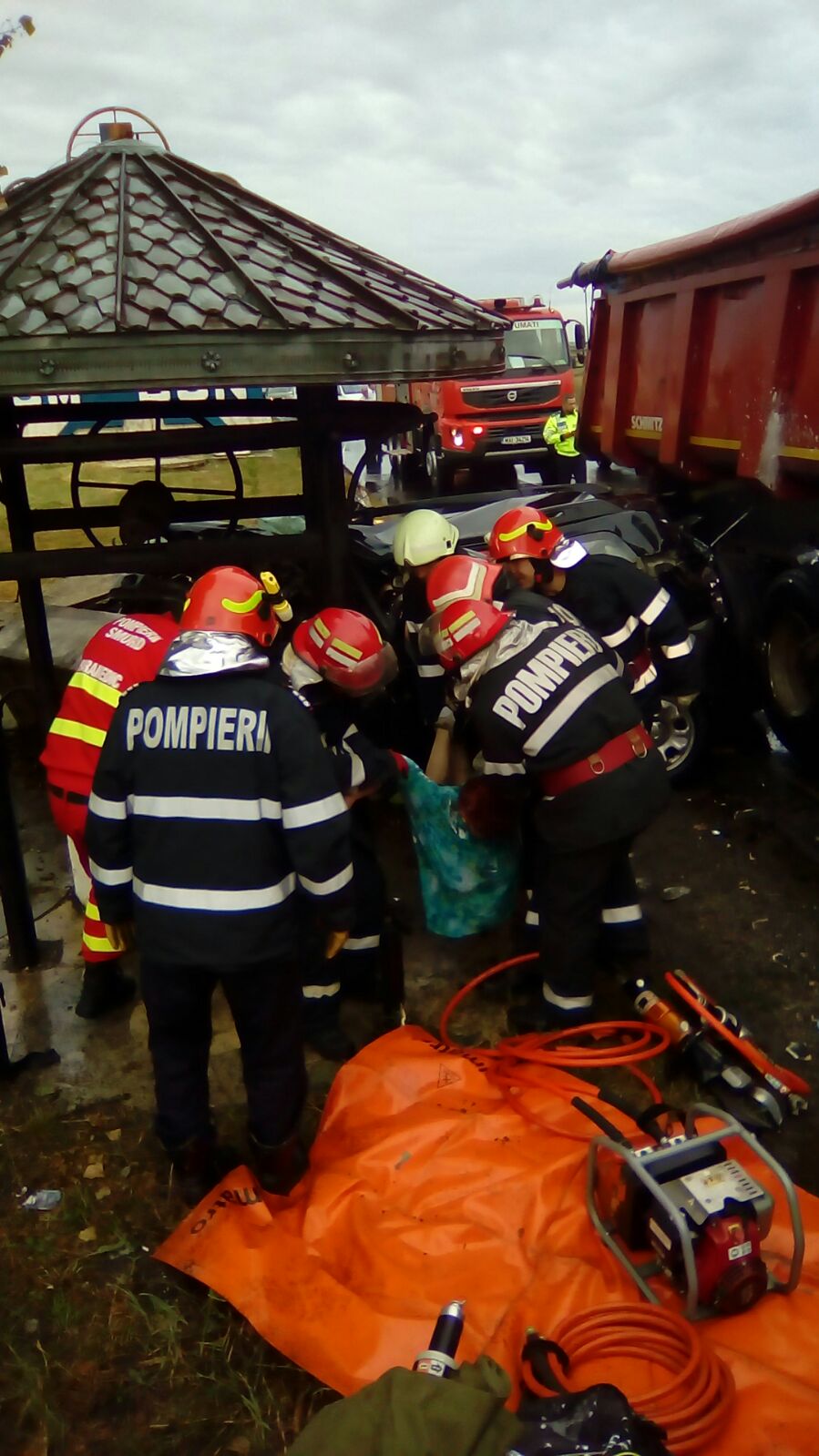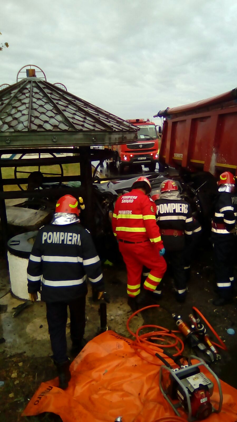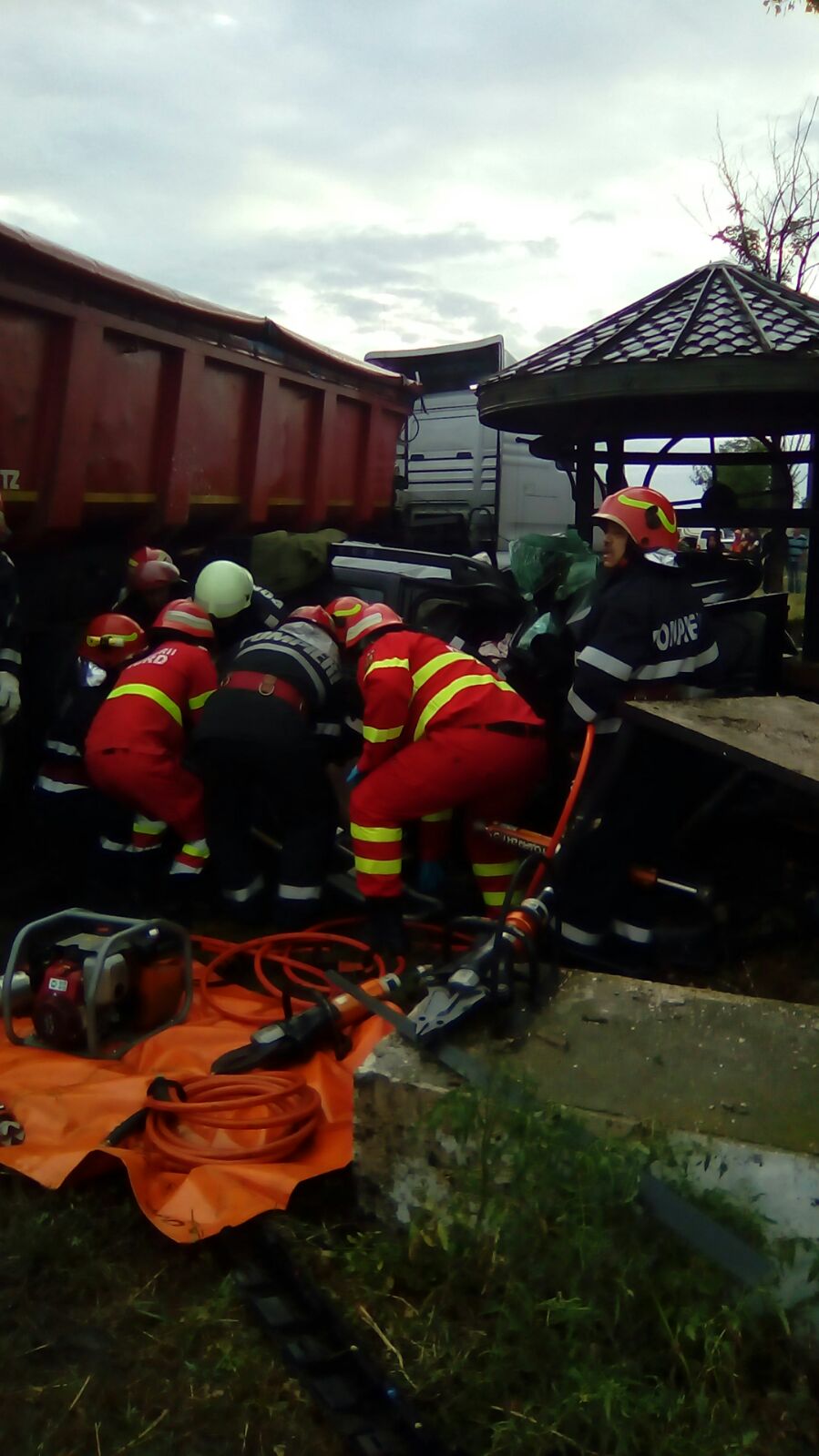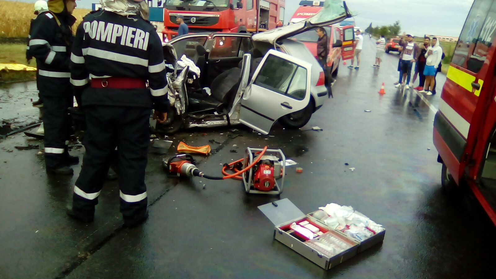 S-a acționat cu o autospecială, patru ambulanțe SMURD, o ambulanță a Serviciului Județean și două utilaje de descarcerare.