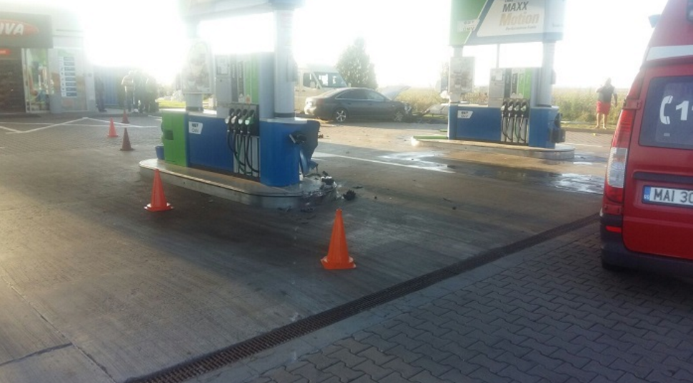 FOTO – Autostrada Soarelui: O mașină a lovit pompa unei stații de benzinărie