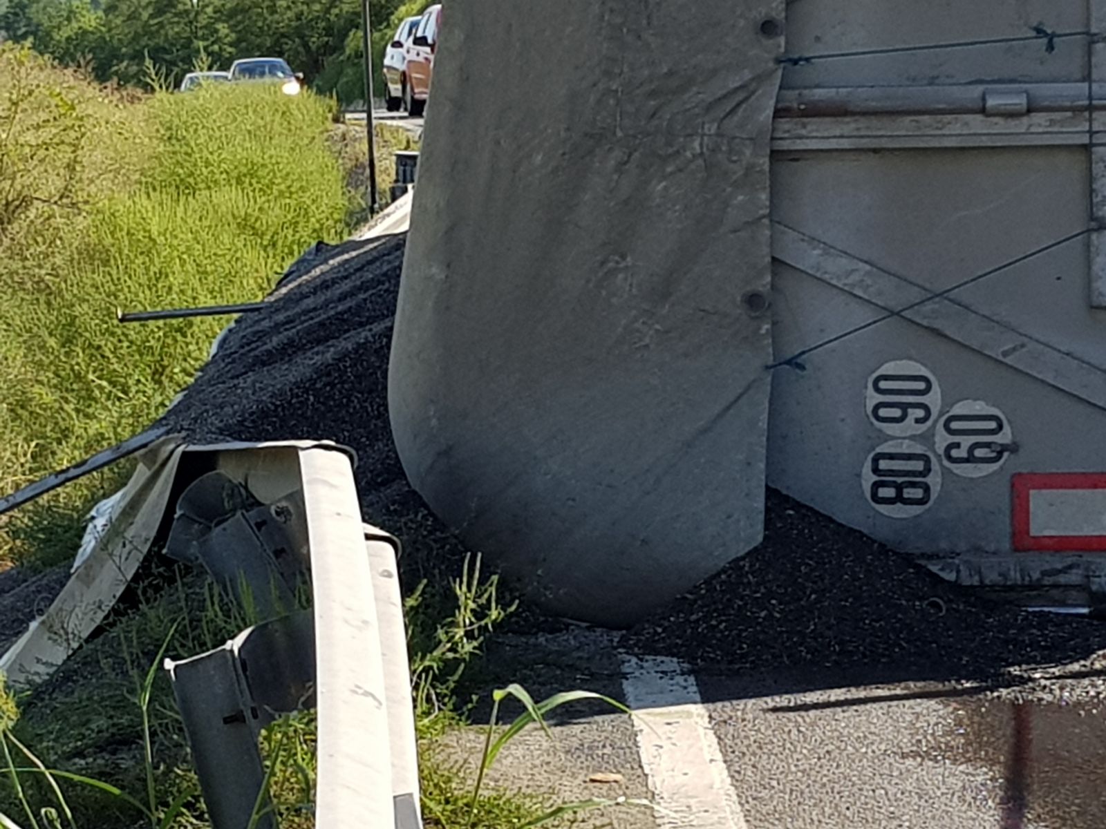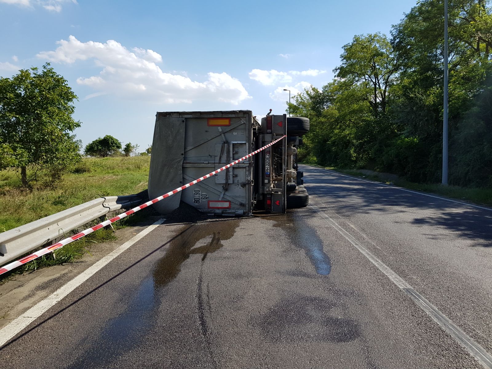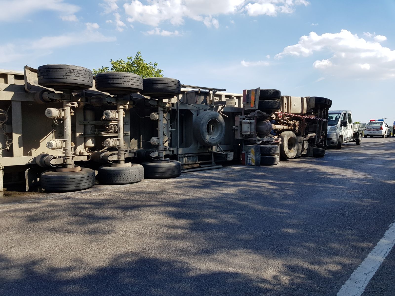 Un camion care transporta semințe de floarea soarelui a fost implicat astăzi într-un accident rutier în apropiere de Cernavodă. Șoferul TIR-ului spune că, într-un moment de neatenție, la intrarea într-o curbă, a pierdut control asupra mastodontului încărcat cu marfă și s-a răsturnat pe carosabil.