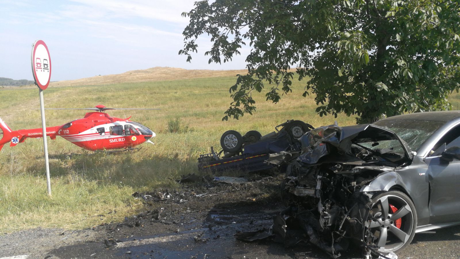 O victimă din autoturismul Audi, în vârstă de 35 ani, a fost preluată de elicopterul SMURD.