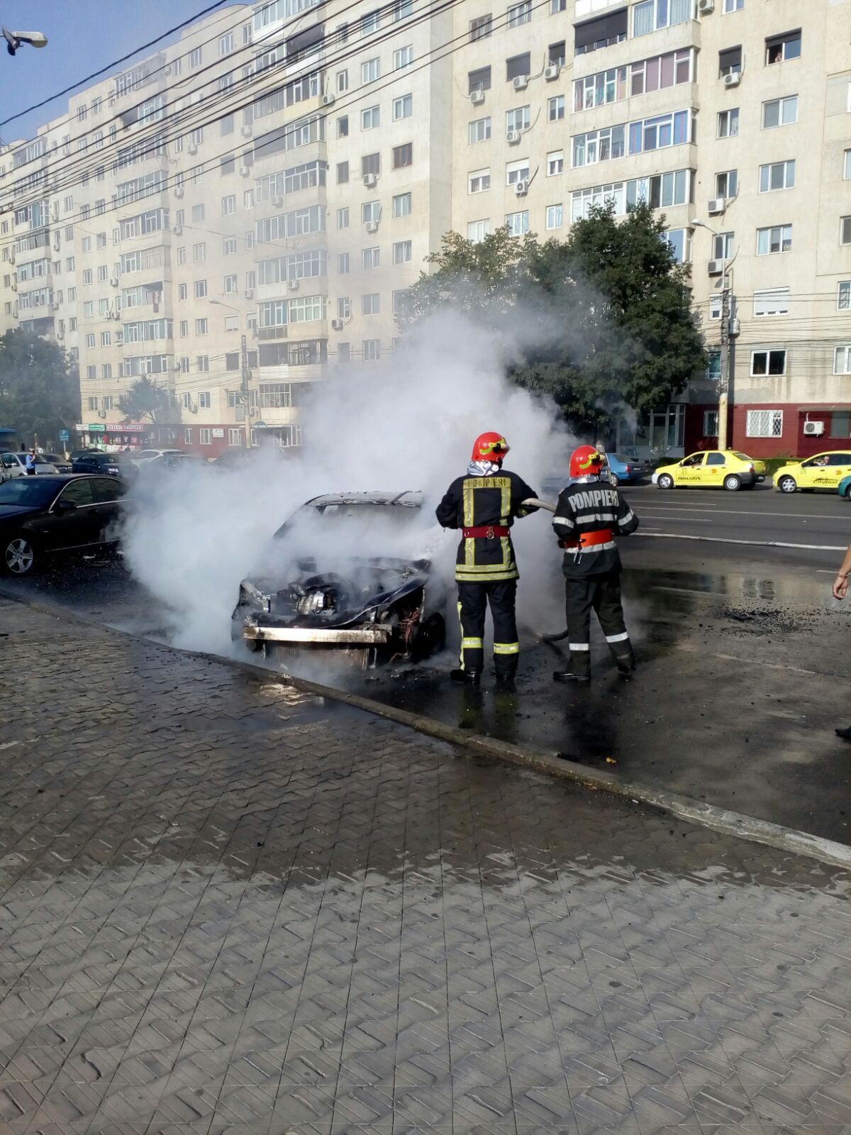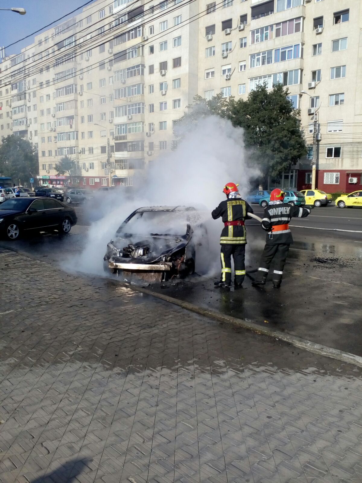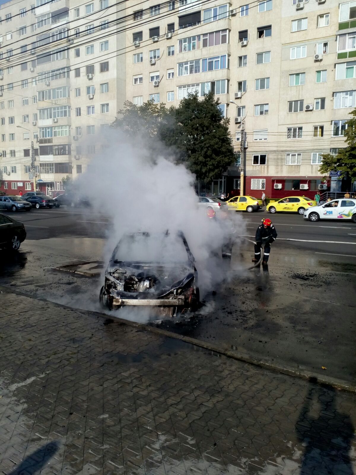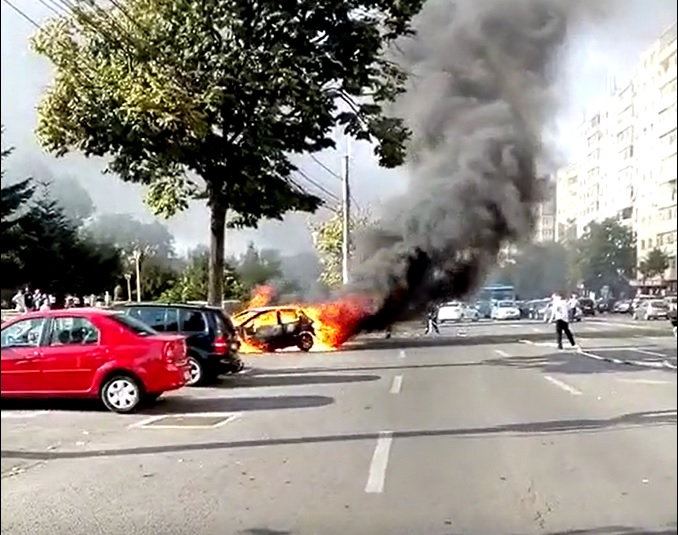 VIDEO/FOTO – CONSTANȚA: Mașină în flăcări în centrul orașului