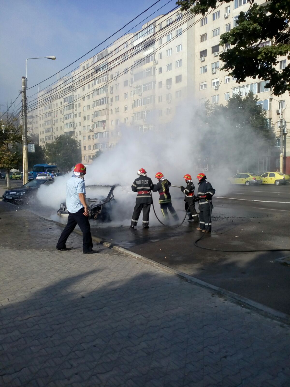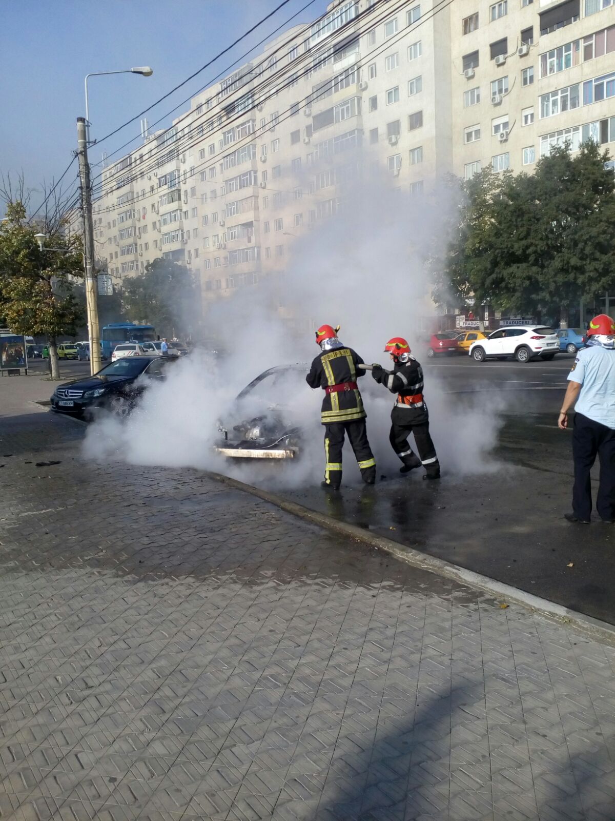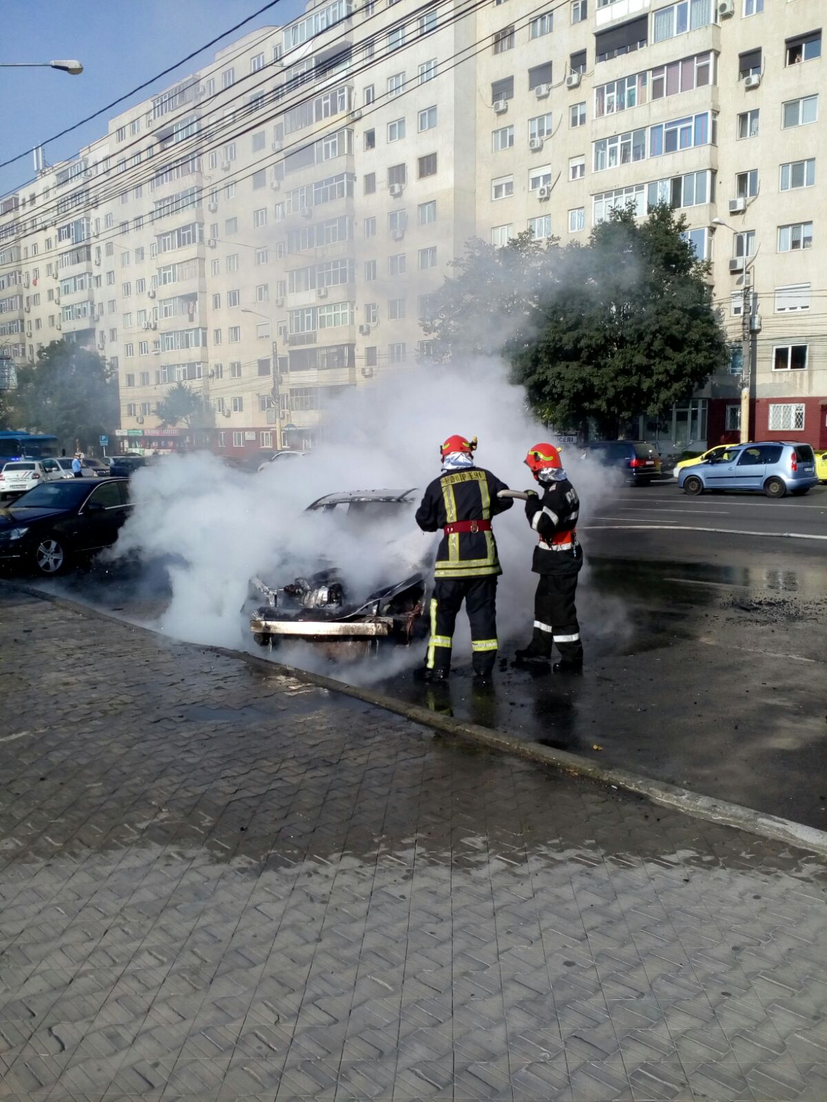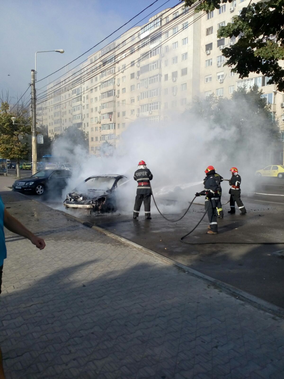 VIDEO/FOTO – CONSTANȚA: Mașină în flăcări în centrul orașului