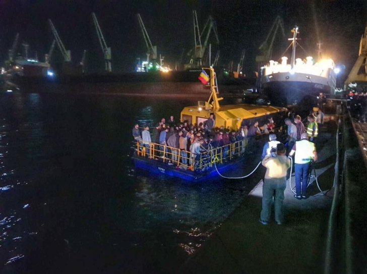 CONSTANȚA/FOTO: Pescador cu migrați remorcat în portul Midia. 50 de copii salvați