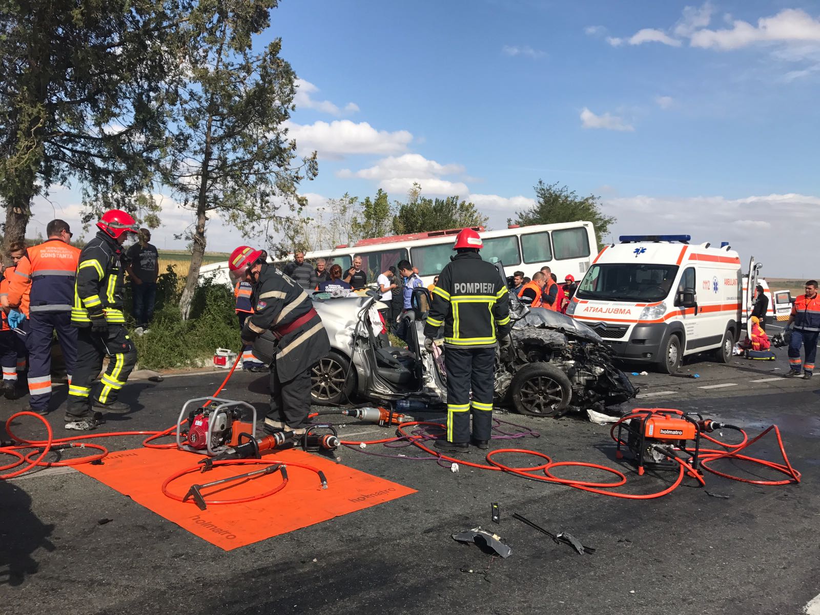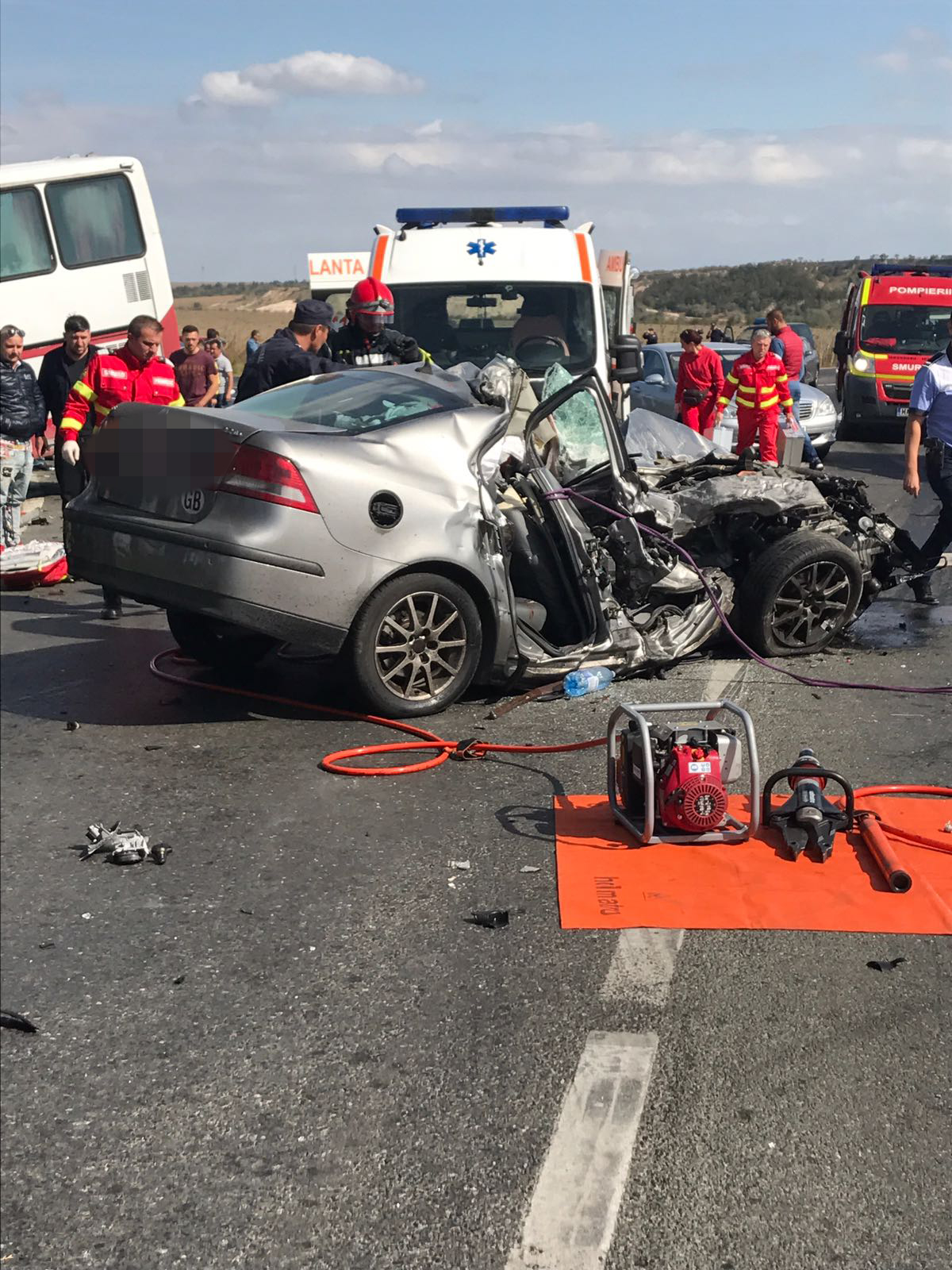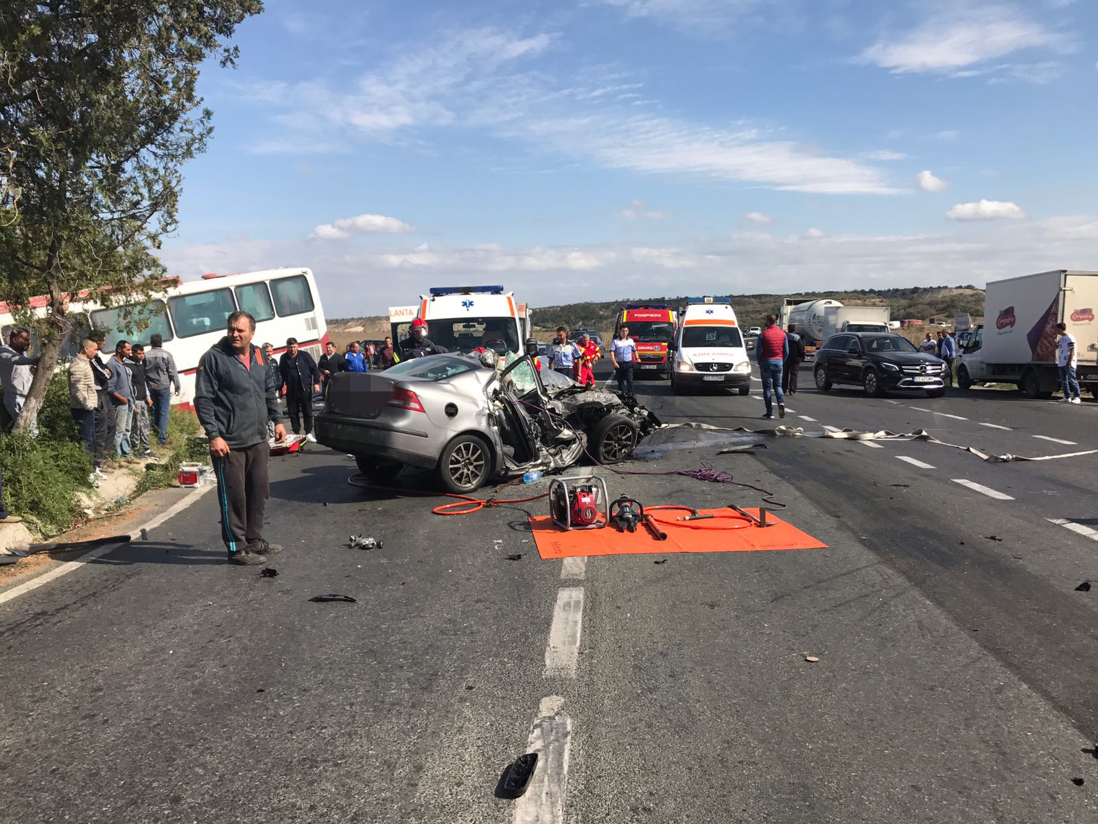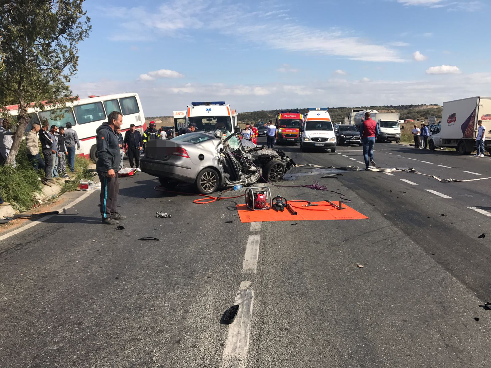 Update! Județul Constanța: Mașină strivită după impactul violent cu un autocar. ISU a activat Planul Roșu! (foto)