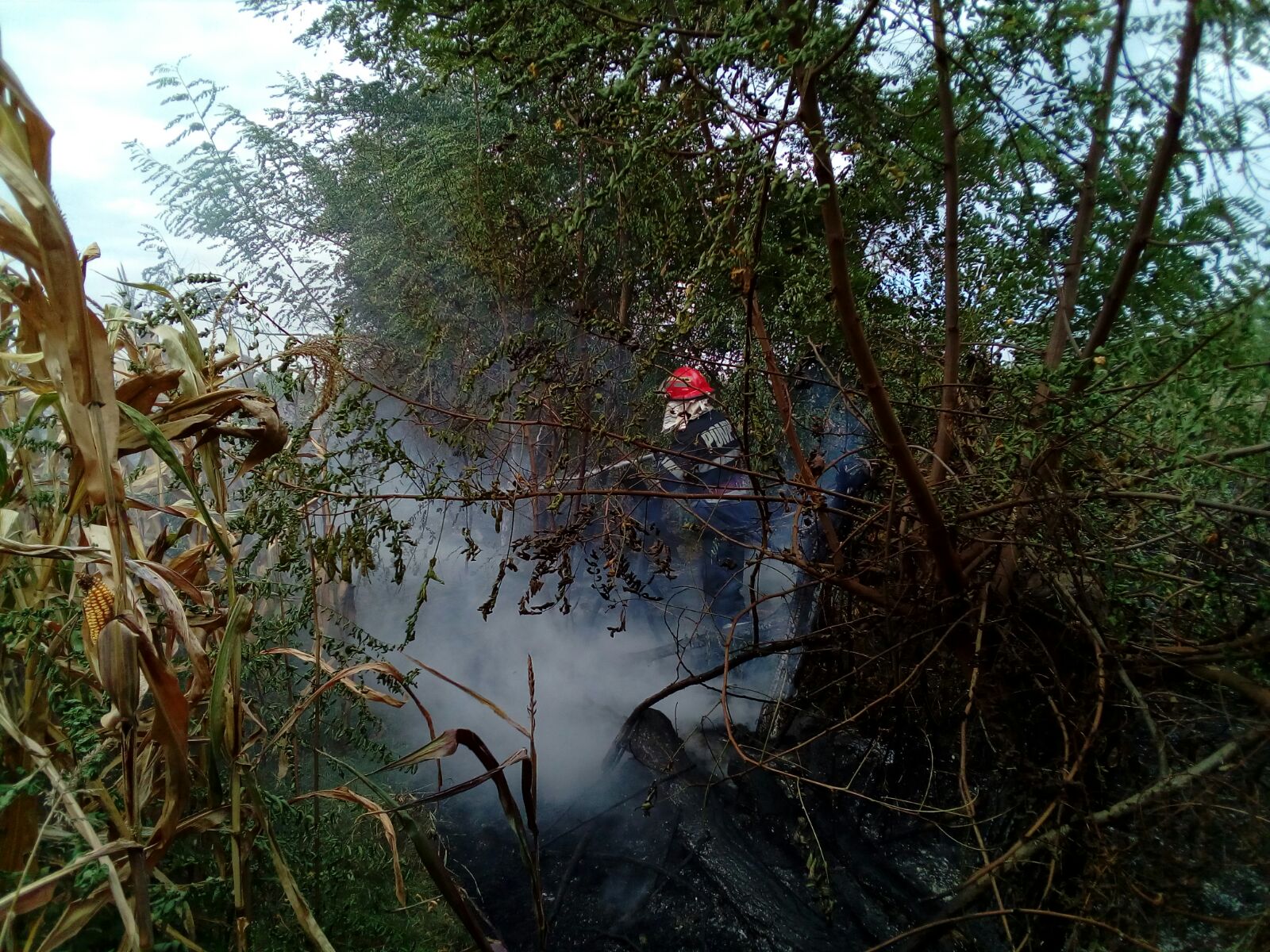 Se intervine cu o autospecială de stingere cu apă și spumă și 4 subofițeri.