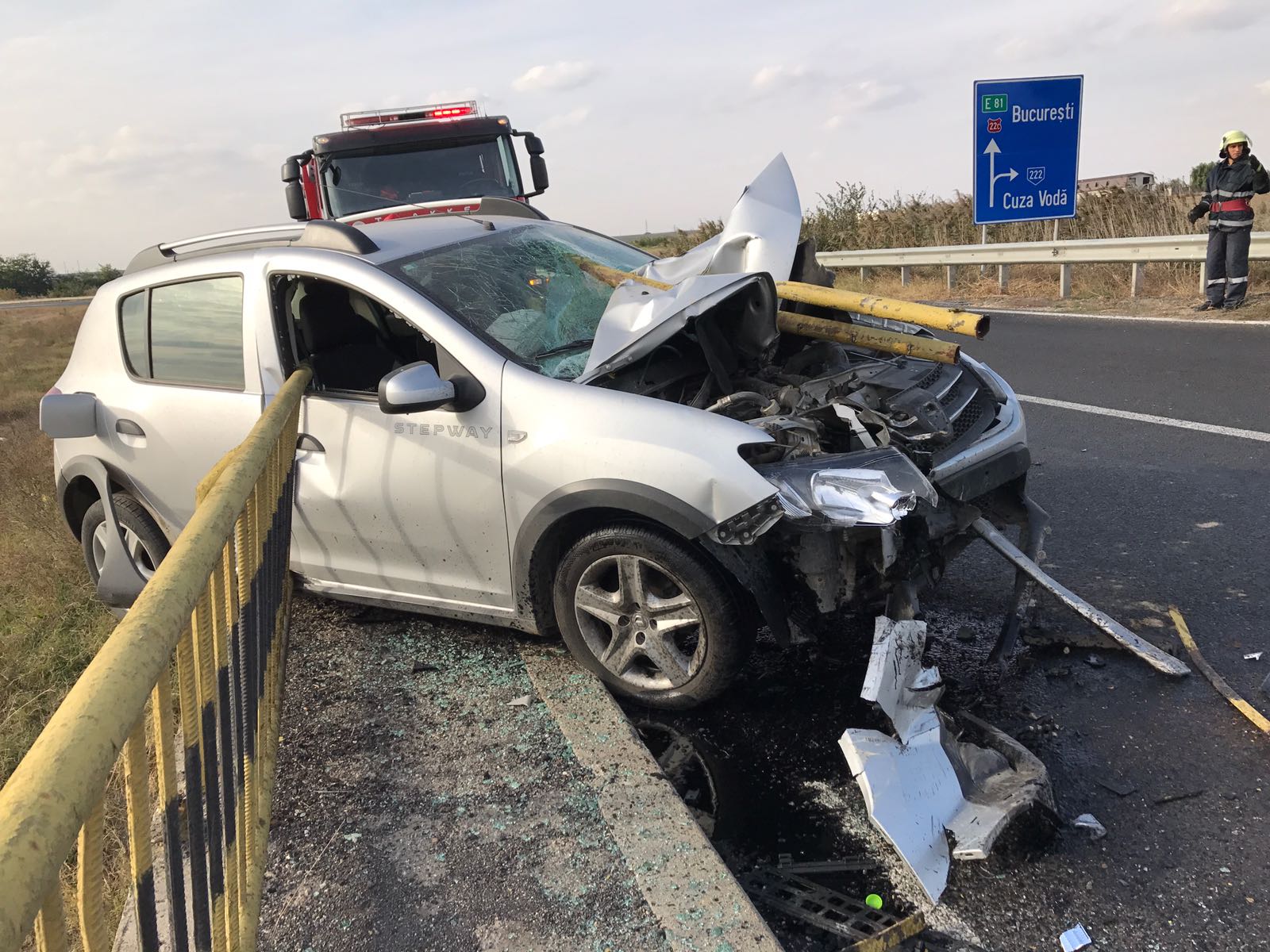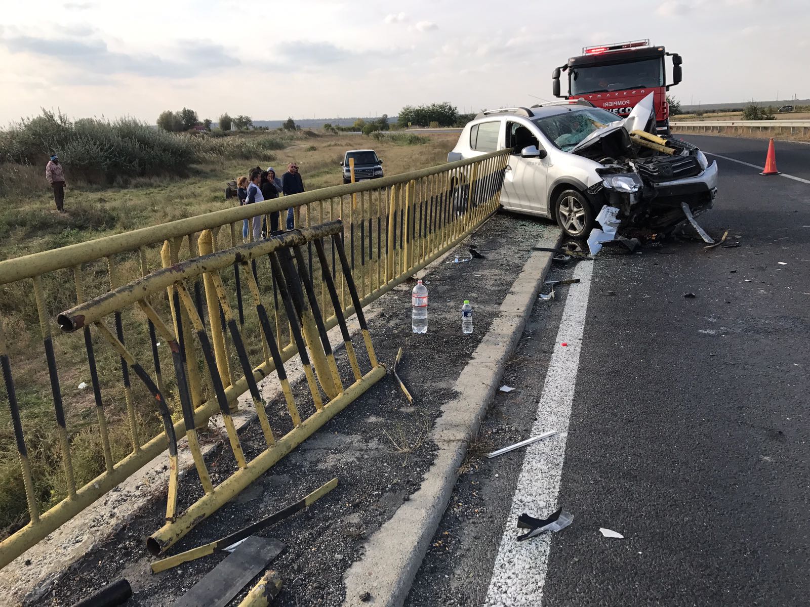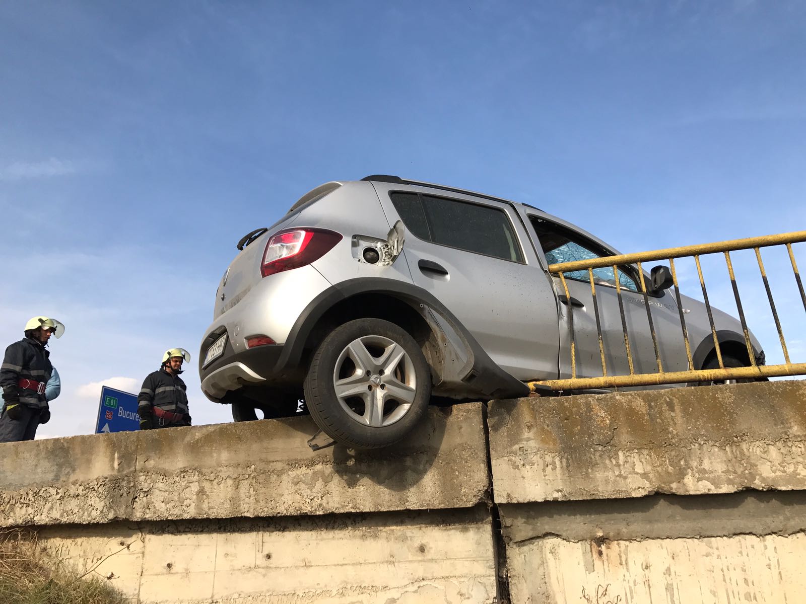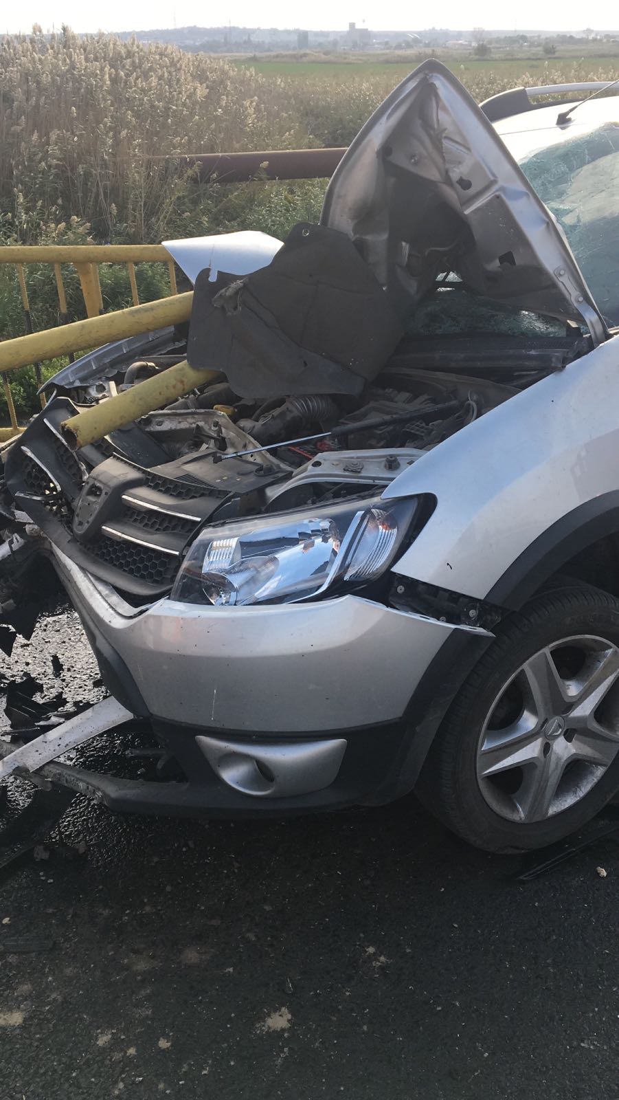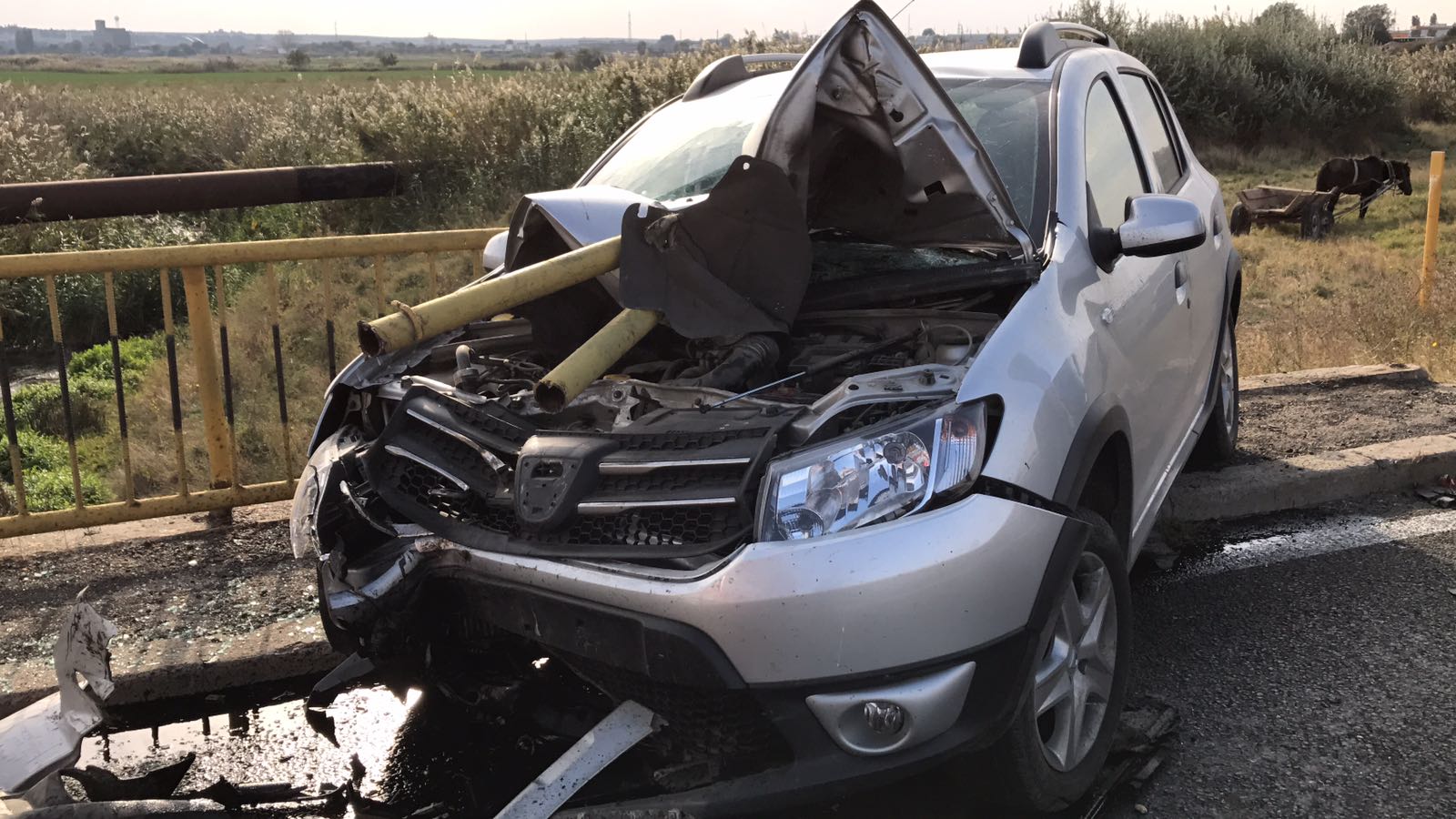 Doar o minune a făcut și ca fiarele rupte din parapetul podului și care au pătruns prin parbriz să nu îi sfârtece pe cei doi ocupați ai automobilului.